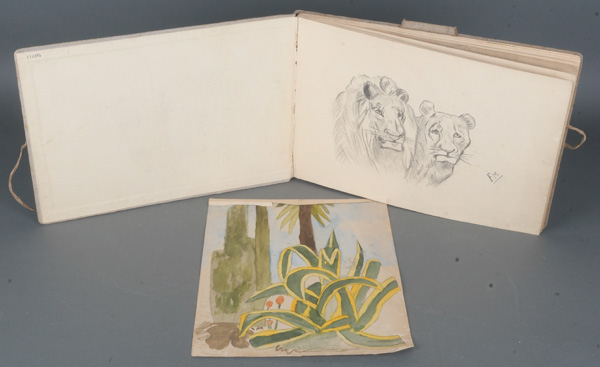 - Katalog-Nr: 1383F. Mertens (Maler des 19./20. Jhs.). Skizzenbuch mit meist Bleistiftzeichnungen von Löwenköpfen, Luchsen, Nilpferden, Dromedaren, Schimpansen, Pflanzen und Figuren, re./u./monogr., ein Blatt sign./dat. 1916.o.L.