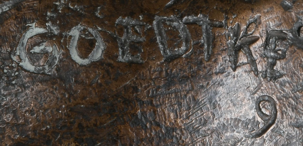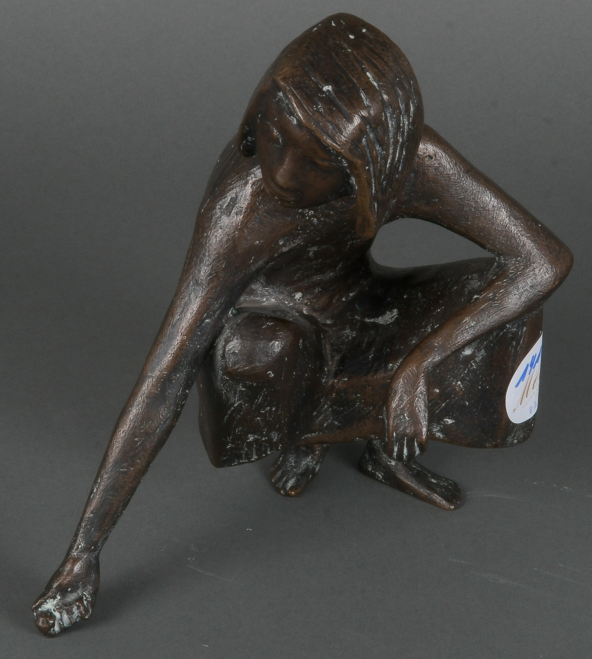 - Katalog-Nr: 1417Karlheinz Goedtke (1915-1995). „Murmelspielerin“. Bronze, verso sign., am Rocksaum Gießerstempel „Schmäke Düsseldorf“, H=18,6 cm.o.L.