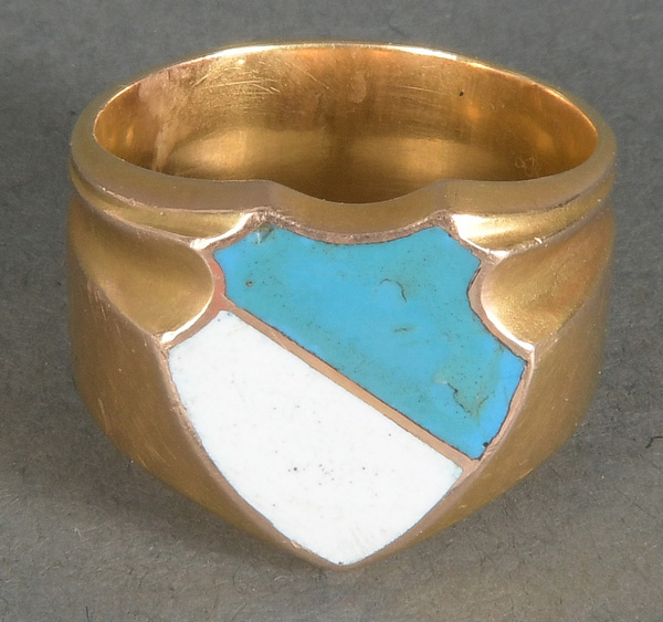 - Katalog-Nr: 1472Wappenring. 18 kt Gold, teilw. emailliert, Gesamtgewicht ca. 8,4 g, Ringgröße 55.o.L.