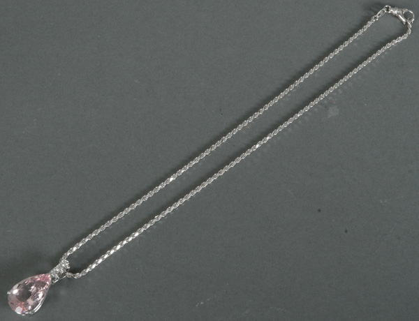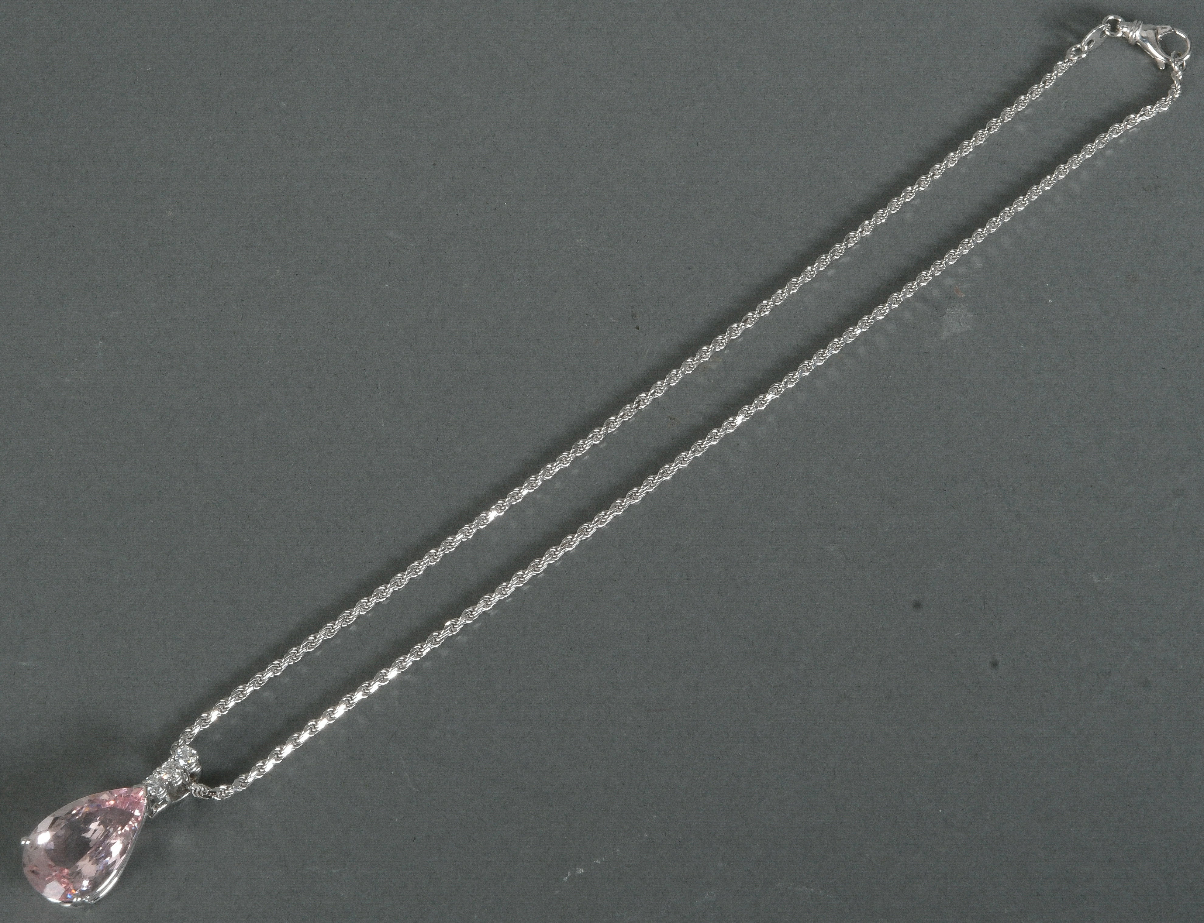 - Katalog-Nr: 1496Gliederhalskette mit Clipanhänger. 18 kt Gold, besetzt mit Morganit und drei Brillanten, ca. 0,24 ct, Gesamtgewicht ca. 13,1 g, L=39,1 cm. Die Begutachtungen der verarbeiteten Edelsteine und Diamanten wurden im gefassten Zustand vorgenommen, d.h. unter Vorbehalt einer sachgerechten Graduierung, die nur an ungefassten Steinen erfolgen kann. Dies hat zur Folge, dass die Gewichte (sog. "berechnete Gewichte", d.h. ca.+/- 10 % Abweichung) und Qualitäten (Farbe, Reinheit und Schliff) der Steine nur annähernd angegeben werden können.o.L.
