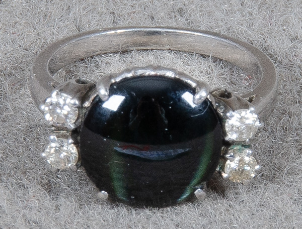- Katalog-Nr: 1482Damenring. Silber, besetzt mit Korund und vier Brillanten, ca. 0,30 ct, Gesamtgewicht ca. 3,7 g, Ringgröße 49. Die Begutachtungen der verarbeiteten Edelsteine und Diamanten wurden im gefassten Zustand vorgenommen, d.h. unter Vorbehalt einer sachgerechten Graduierung, die nur an ungefassten Steinen erfolgen kann. Dies hat zur Folge, dass die Gewichte (sog. "berechnete Gewichte", d.h. ca.+/- 10 % Abweichung) und Qualitäten (Farbe, Reinheit und Schliff) der Steine nur annähernd angegeben werden können.o.L.
