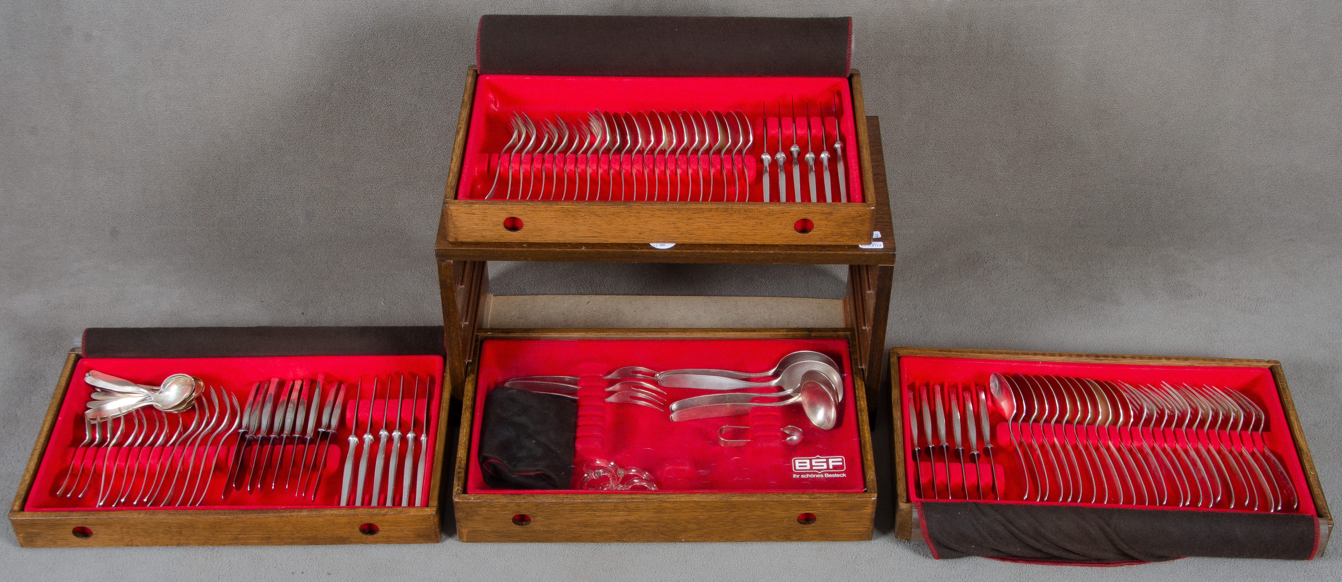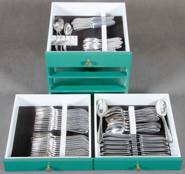 - Katalog-Nr: 1649Konvolut div. Speisebesteckteile im Kasten. 800er Silber, ca. 2.650 g.o.L.