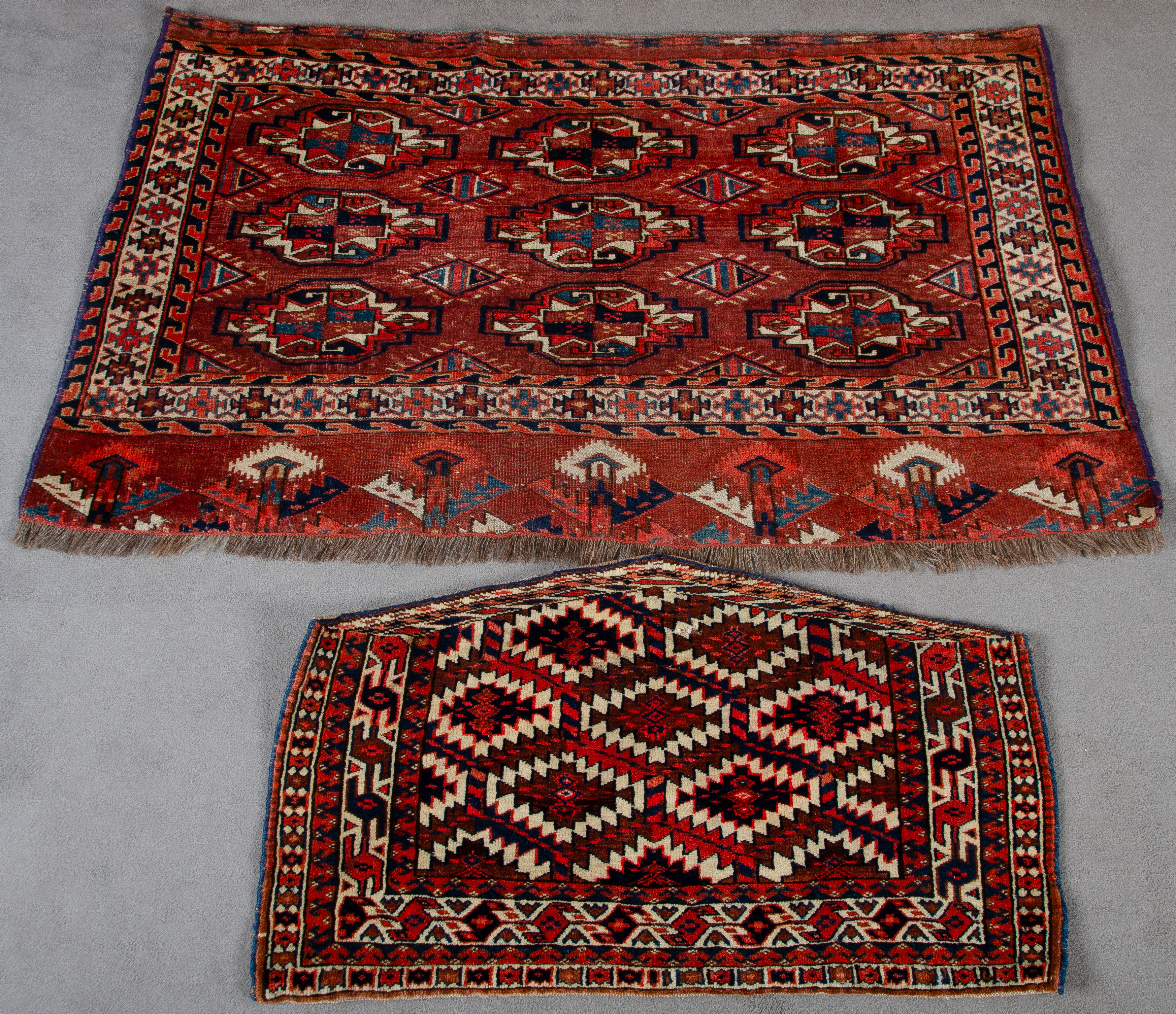 - Katalog-Nr: 1684Zwei turkmenische Wandbehänge, 42 x 70 / 71 x 110 cm.o.L.