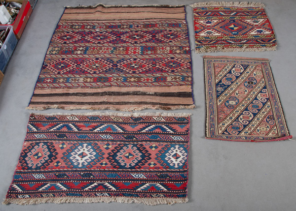 - Katalog-Nr: 1687Vier Sumakh-Wandbehänge, 47 x 59 bis 100 x 100 cm. Zertifikat zu einem Stück der GALERIE OSTLER, München 7.12.1978, inkl. Rechnung über DM 470,00 liegt vor.o.L.