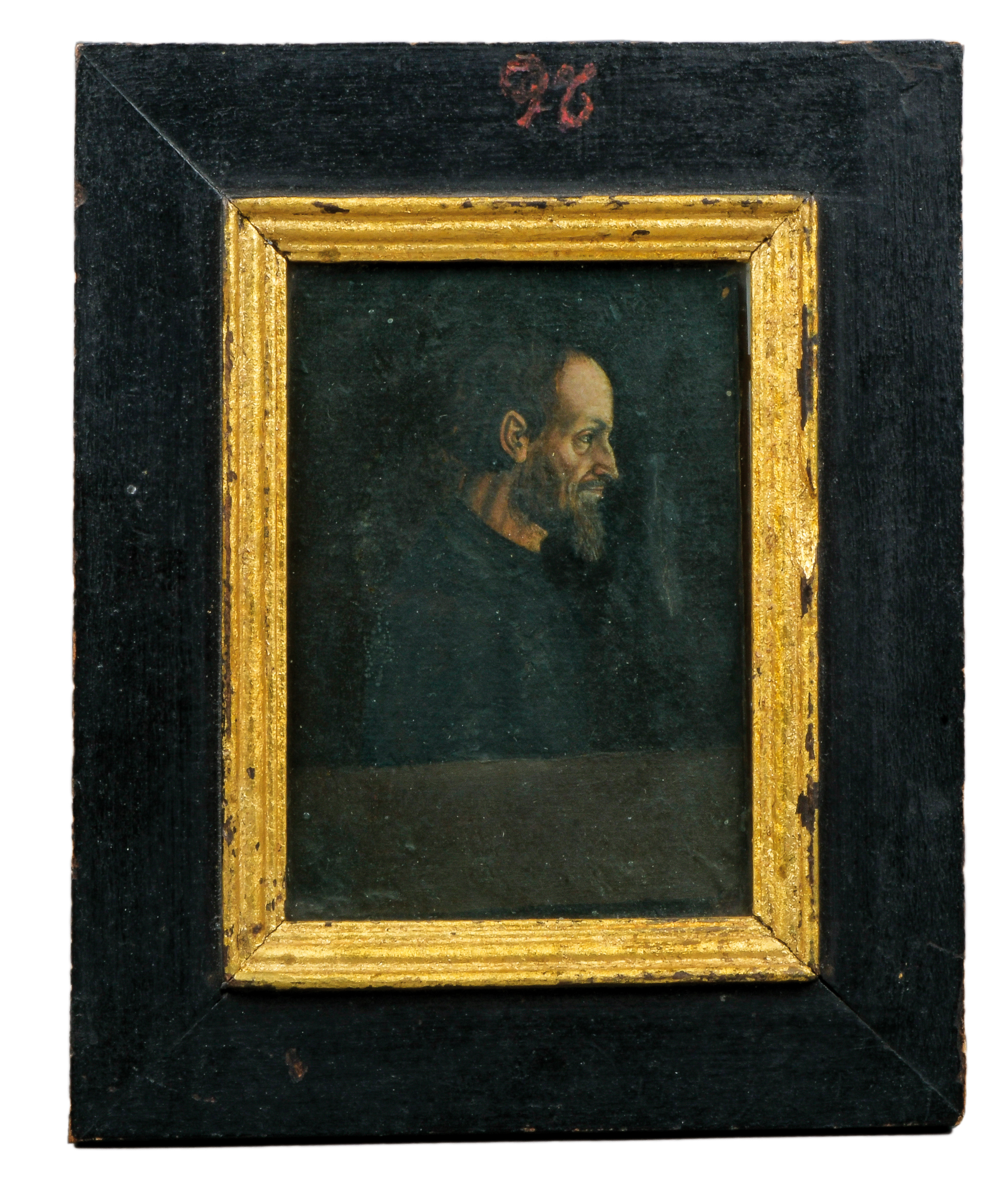 Porträt eines Herren mit Kinnbart. Öl/Holz, hi./Gl. gerahmt in schlichtem rechteckigem Holzrahmen mit profiliertem Innenfeld.