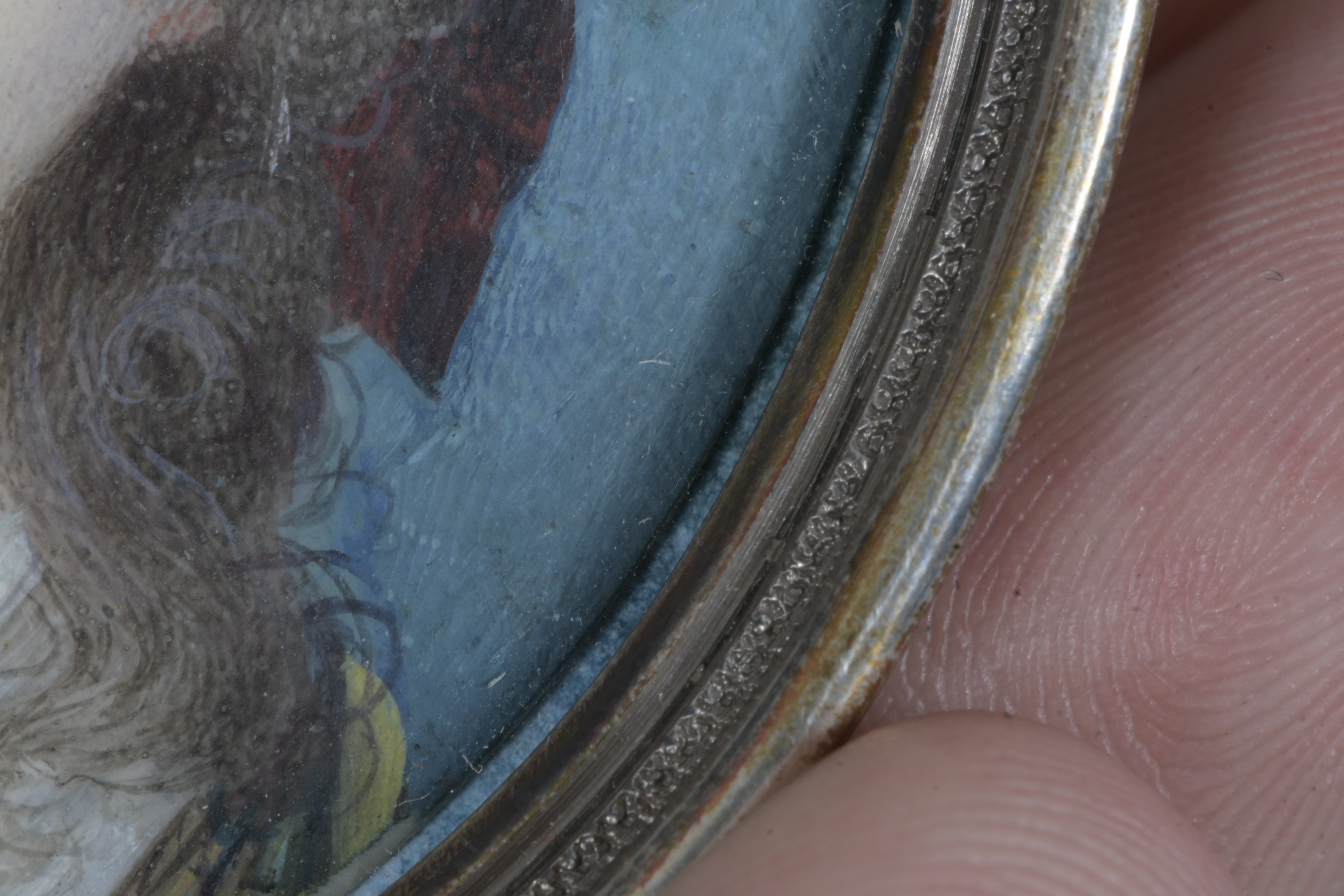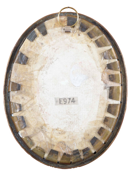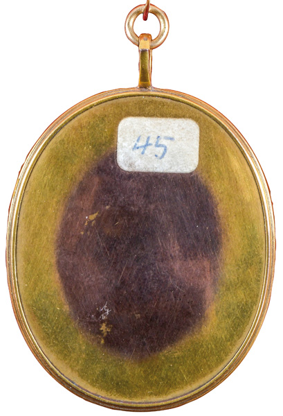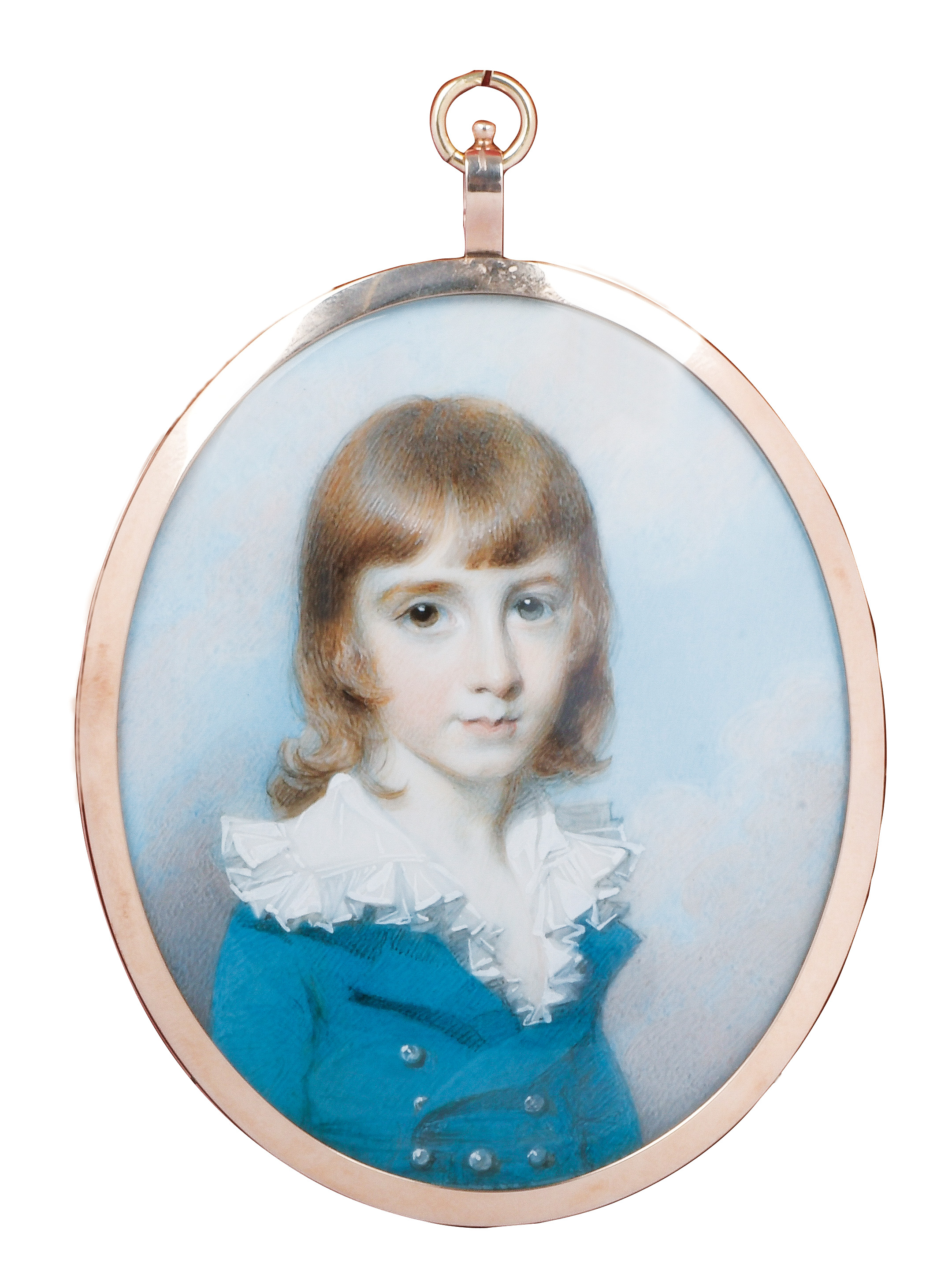 Porträt von Master Sparkes als Knabe. Bunt gemalt in Puderfarben und aquarelliert auf Elfenbeinplatte, hi./Gl. in aufwendigem 14 kt Gelbgoldrahmen, verso geflochtene Haararbeit und zwei Haarlocken mit Goldklammer in Schlangenform. Provenienz: Christie's, London 12. Nov. 1963 für GBP 12.000,00. Ausstellung: The Arts Council Gallery, Edinburg, „British Portrait Miniatures“, Edinburgh 1965, Nr. 262. Vgl. G. C. Williamson / H. L. D. Engleheart, „George Engleheart 1750-1829. Miniature Painter to George III“, London 1902, S. 113. Elfenbein-Gutachten und EU-Verkaufsgenehmigung liegen vor und können für EUR 150,00 erworben werden.
