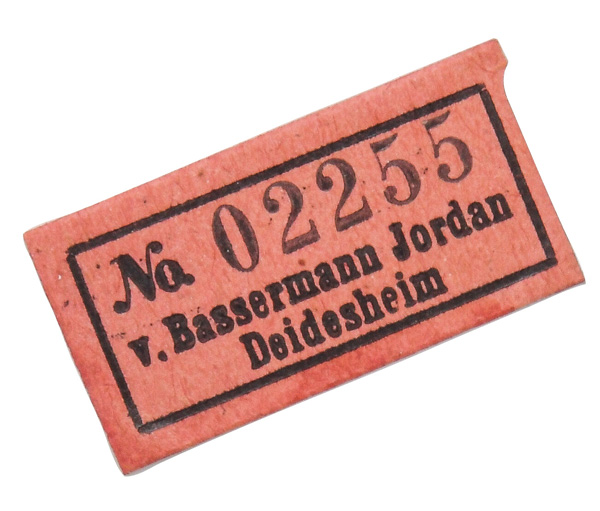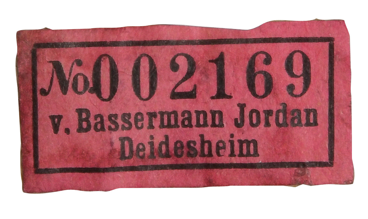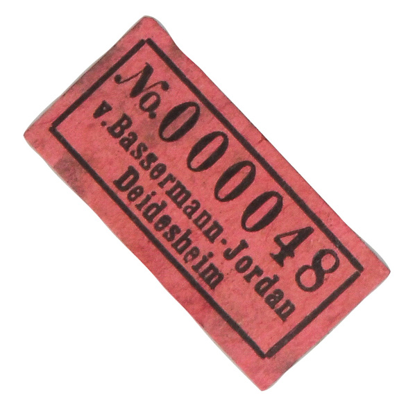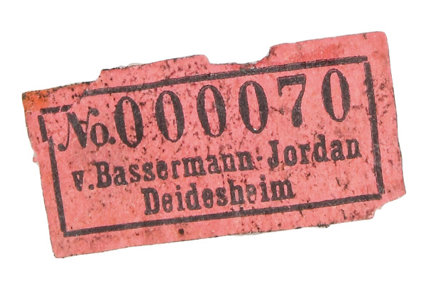 | Passend zur Vornummer. REM, Sammlungs-No. 000050. Zugehörig zu einer Sammlung von neun Tellern. Diese Teller waren bei der Familie Bassermann-Jordan zu Festlichkeiten regelmäßig in Gebrauch. Je rund gemuldet mit steigender Fahne und umlaufend gewelltem, kapuzinerbraun staffiertem Lippenrand. Sparsam purpurn bemalt mit indianischen Streublumen. Porzellan, verso unterglasurblaue, bekrönte, ligierte CT-Marke. Zuerst werden die Teller einzeln aufgerufen. Im Nachgang werden die Einzelbeträge addiert und das höhere Gesamtgebot erhält den Zuschlag.
