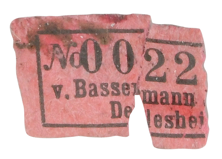Rund gemuldet, mit Korbflechtrand, gold und kapuzinerbraun gesäumt. Spiegel bunt bemalt mit Straßburger indianischen Blumen. Porzellan, verso sehr seltene unterglasurblaue Rautenschildmarke mit „PH“, Ritzziffer „3“, REM Sammlungs-No. 02284. Vgl. B. Beaucamp-Markowsky, S. 37, Nr. 2.