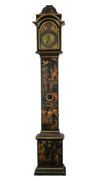 Versicherungswert: € 350,- o.L. Katalog-Nr: 490 Hochbedeutende, chinoise gelackte, höfische Standuhr