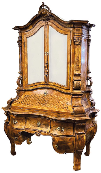 | € 16.000,- Katalog-Nr: 492 Hochbedeutender Barock-Aufsatzsekretär „Cantourgen“