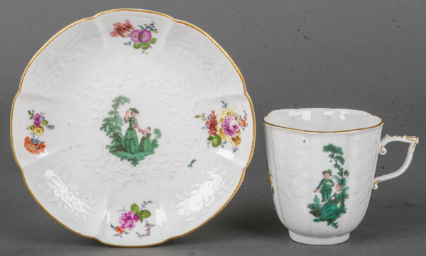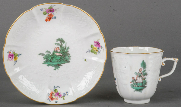 € 1.500,- Katalog-Nr: 505 Bechertasse mit Unterschale aus dem grünen WatteauserviceMeissen 1750-63