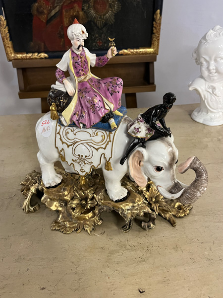 | € 1.200,- Katalog-Nr: 522 Sultan auf Elefant mit Bronzesockel