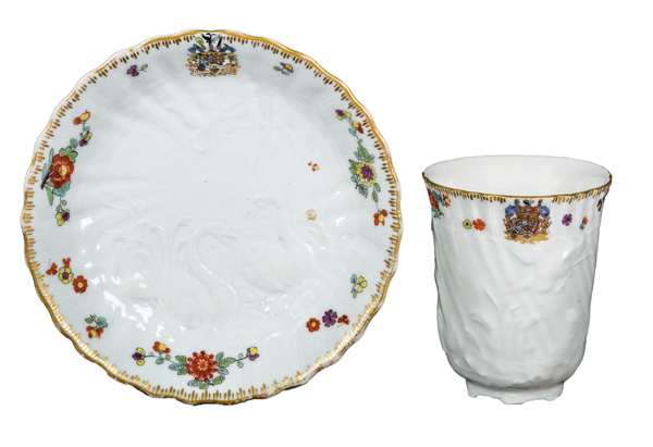 | € 10.000,- Katalog-Nr: 644 Becher mit Unterschale aus dem Schwanenservice des Grafen von BrühlMeissen 1739-40