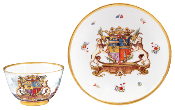 | € 1.200,- Katalog-Nr: 646 Koppchen mit Unterschale aus dem Wappenservice „Mauro d'Aversa“Meissen 1735-40