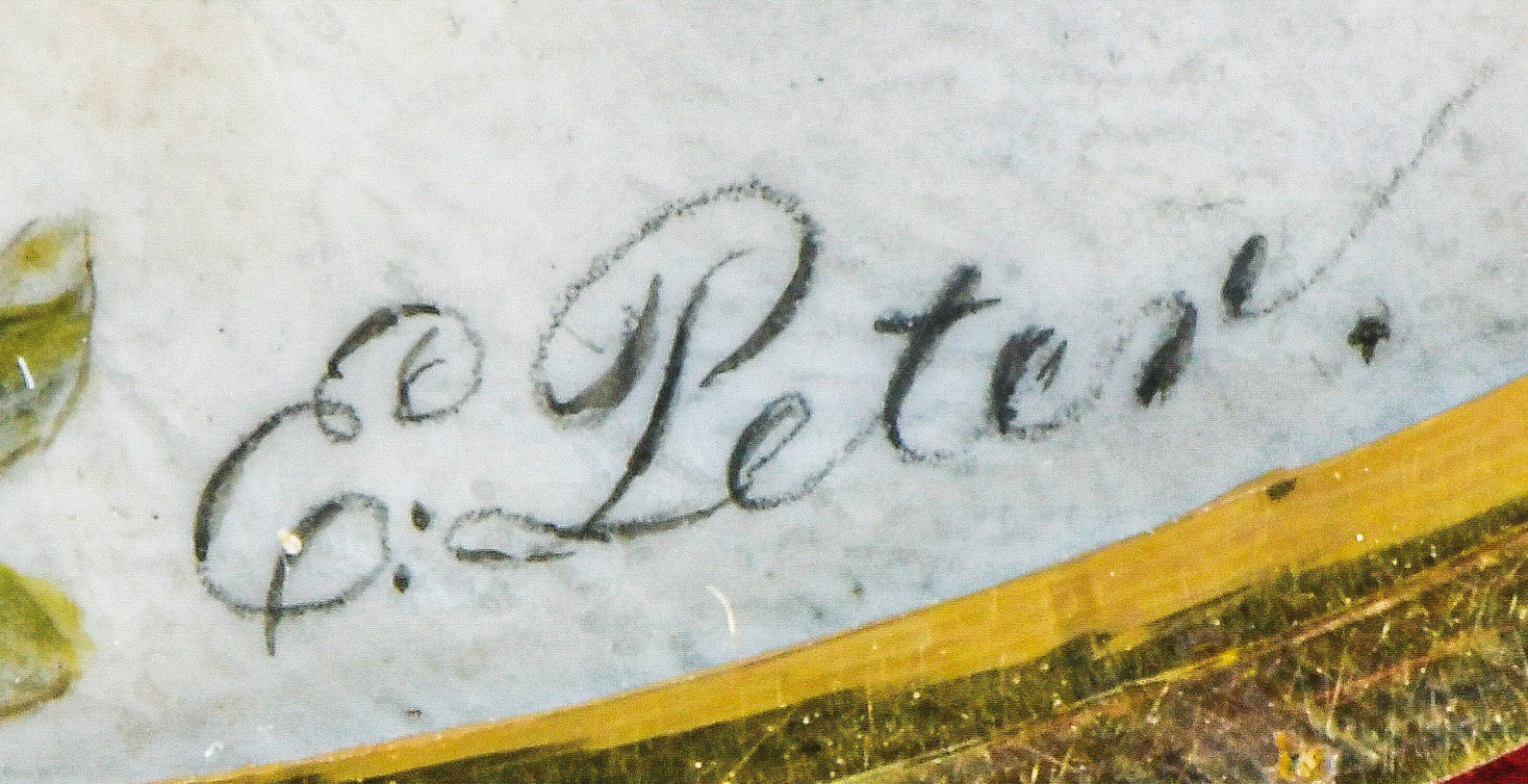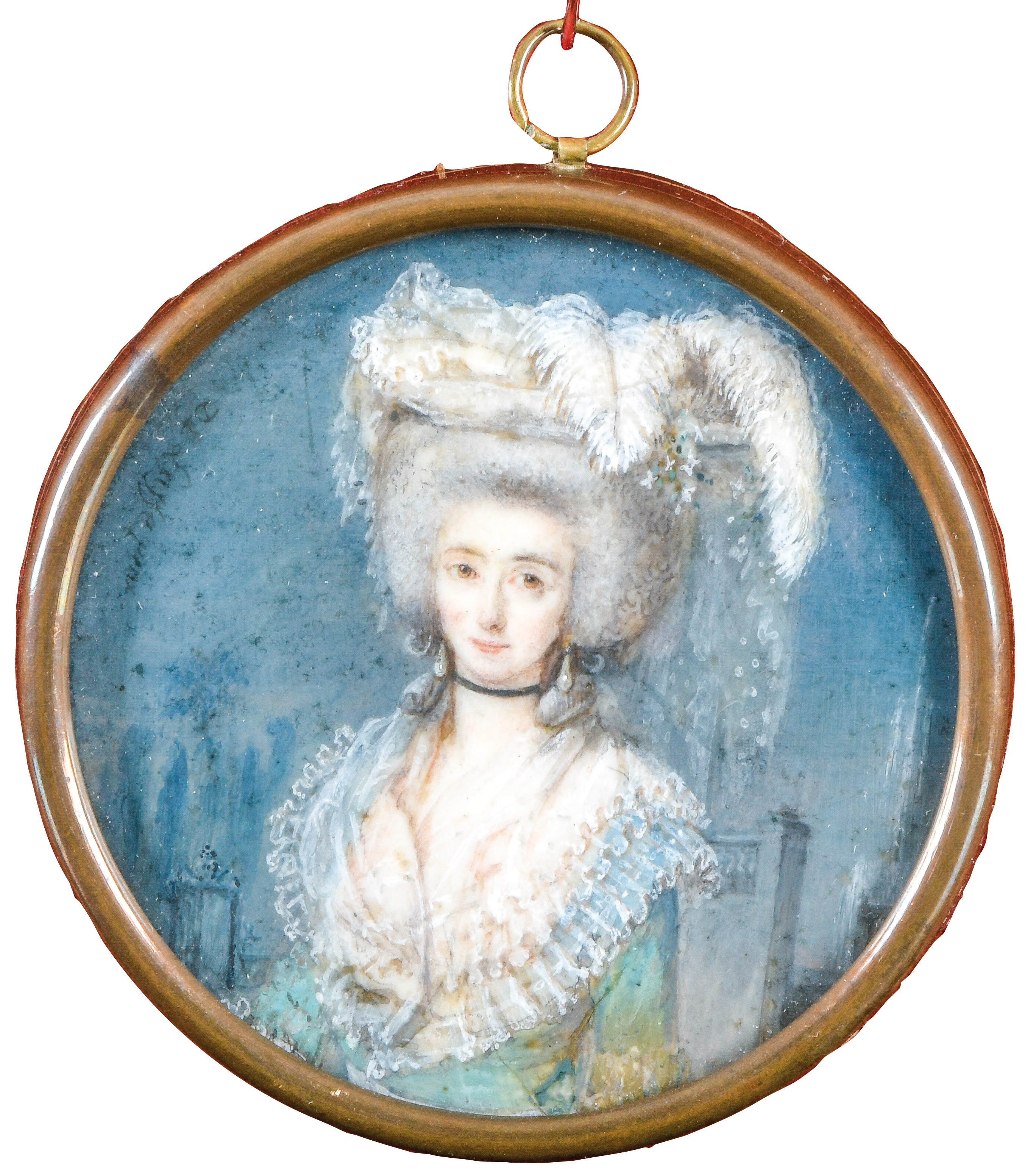 (1756-1804) Porträt einer Dame. Bunt gemalt in Puderfarben und aquarelliert auf Elfenbeinplatte, re./u./sign., hi./Gl. in zierlichem, aufwendigem, goldfarbenem Rahmen mit Reliefgrund. Provenienz: Koller, Zürich 23. Mai 1980 für SFR 9.500,00. Elfenbein-Gutachten und EU-Verkaufsgenehmigung liegen vor und können für EUR 150,00 erworben werden. D=6,6 / 7,7 cm € 1.500,- - Katalog-Nr: 111Thomas Emanuel Peter