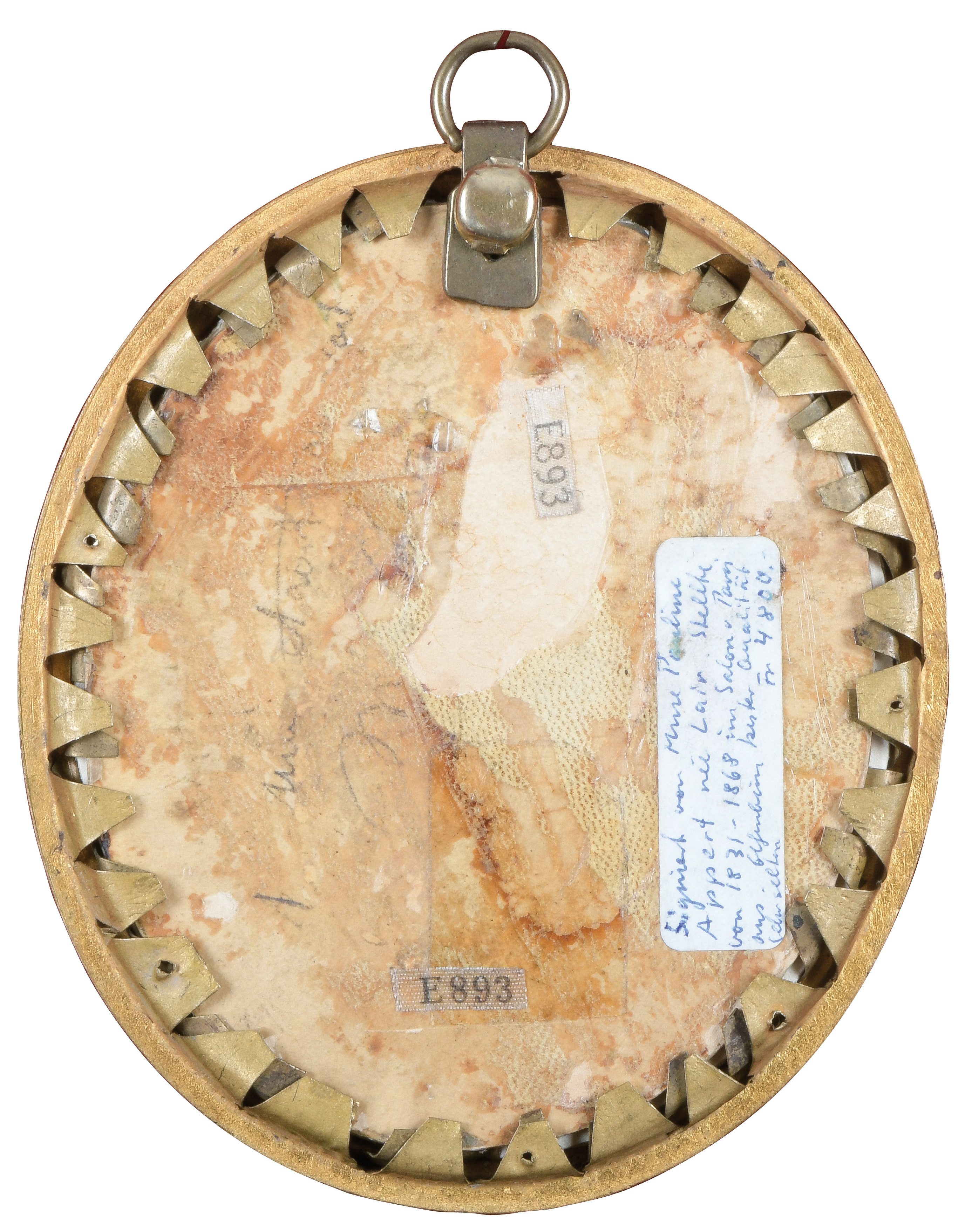 (1759-1832) Porträt eines Mädchens. Bunt gemalt in Puderfarben und aquarelliert auf Elfenbeinplatte, re./u./monogr./dat. 1795, hi./Gl. in vergoldetem Bronzerahmen. Provenienz: Sotheby's, London 9. Juni 1986. Elfenbein-Gutachten und EU-Verkaufsgenehmigung liegen vor und können für EUR 150,00 erworben werden. D=5,9 / 6,5 cm € 360,- - Katalog-Nr: 105Pauline Appert