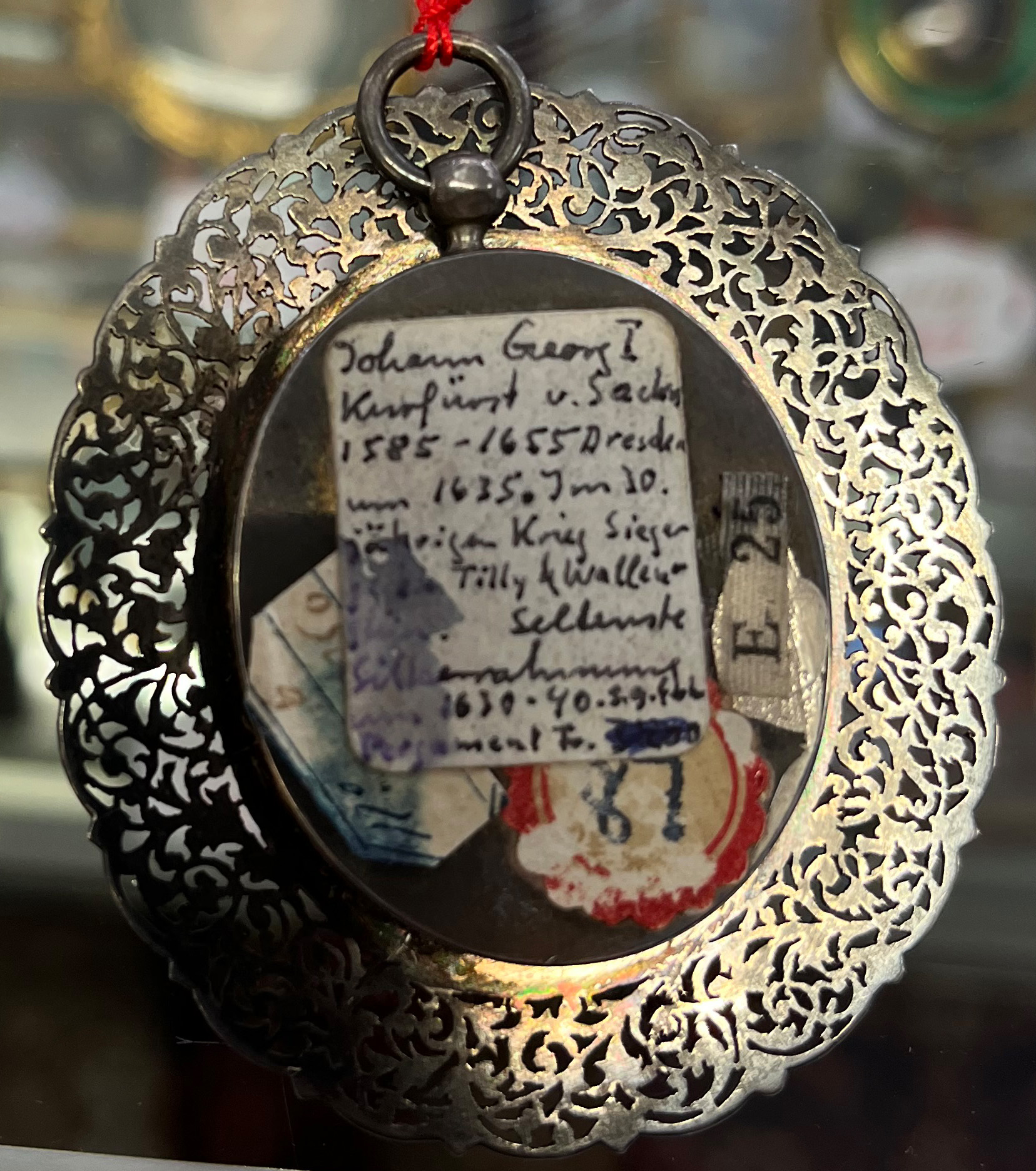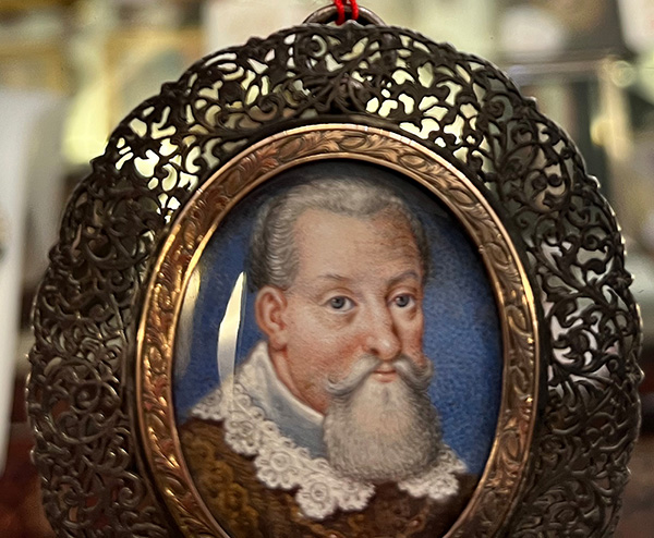 des 17. Jhs. Porträt von Johann Georg I, Kurfürst von Sachsen (1585-1656). Bunt gemalt in Puderfarben und aquarelliert auf Pergament, hi./Gl. in aufwendig floral durchbrochenem Silberrahmen mit Goldrand. Provenienz: Kunsthandel Edwin Bucher, Trogen 1979. 3,4 x 2,7 / 6 x 5,4 cm € 1.200,- - Katalog-Nr: 115Jean-Daniel Welper