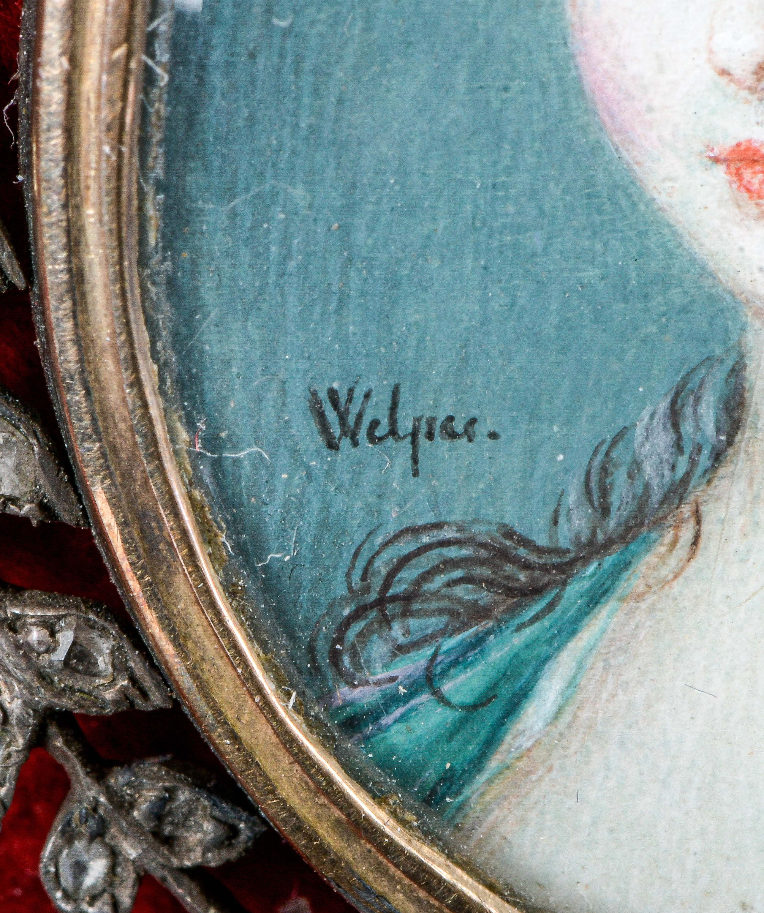 (1763-1814) Porträt der Gräfin Luise von Degenfeld, geb. Gräfin von Erbach zu Erbach. Bunt gemalt in Puderfarben und aquarelliert auf Elfenbeinplatte, li./mittig/sign., hi./Gl. in breitem, ebonisiertem Holzrahmen mit Goldrahmung. Elfenbein-Gutachten und EU-Verkaufsgenehmigung liegen vor und können für EUR 150,00 erworben werden. D=8,8 cm / 15 x 13,3 cm € 1.200,- - Katalog-Nr: 109Cyane Lecoq de Boisbaudran