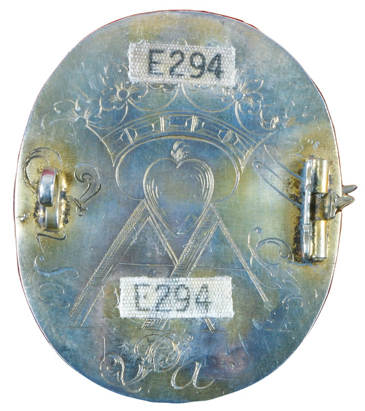 (1685-1767) attrib. Porträt von Lady Mary Osborn, geb. Montagu (1718-1743). Exzellent bunt gemalt in Email auf Kupferplatte, hi./Gl. in 14 kt Goldrahmen mit -rückseite und Hängeöse. Provenienz: Christie's, London 13. Juni 2004. 4,5 x 3,7 / 5,1 x 4 cm € 2.600,- - Katalog-Nr: 118Johann Friedrich Ardin