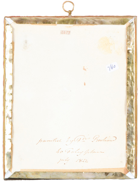 (1798-1858) Porträt von Generalmajor Edward Frederick (1784-1866). Bunt gemalt in Puderfarben und aquarelliert auf Elfenbeinplatte, re./o./sign./dat. 1842, mit Passepartout hi./Gl. in Bronzerahmen. Provenienz: Christie's, London 23. März 1982. Elfenbein-Gutachten und EU-Verkaufsgenehmigung liegen vor und können für EUR 150,00 erworben werden. 13,2 x 9,7 /16,7 x 13,6 cm € 1.000,- - Katalog-Nr: 132Karl von Saar
