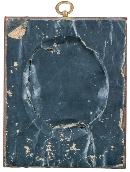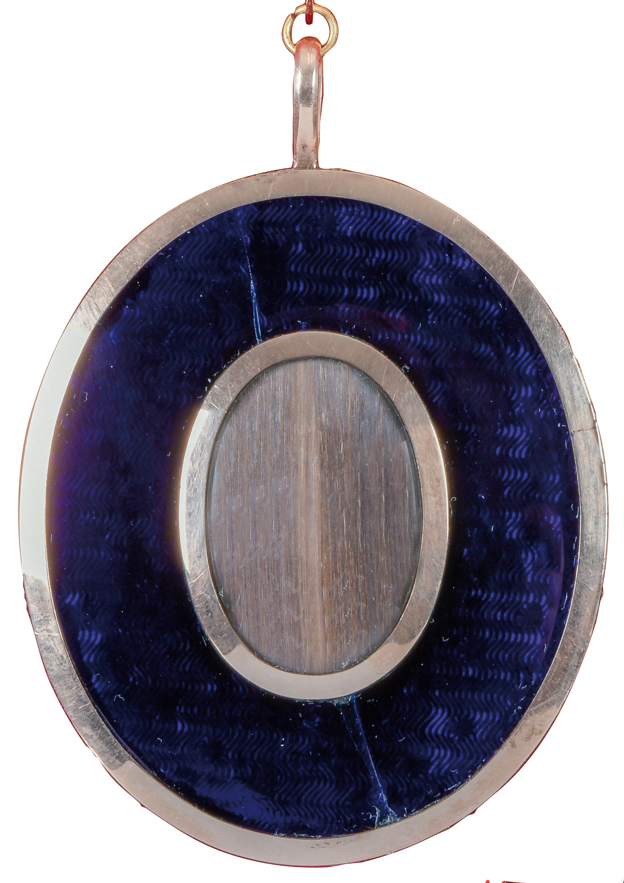 Porträt einer Dame. Bunt gemalt in Puderfarben und aquarelliert auf Elfenbeinplatte, hi./Gl. in Goldrahmen, verso teilw. emailliert und mit Haararbeit hi./Gl. (Email gesprungen). Provenienz: Antiquitäten Gertrud Rudigier, München 1983. Elfenbein-Gutachten und EU-Verkaufsgenehmigung liegen vor und können für EUR 150,00 erworben werden.