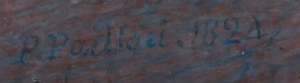Porträt eines Mädchens mit Strohhut. Bunt gemalt in Puderfarben und aquarelliert auf Elfenbeinplatte, li./mittig/sign./dat. 1824, hi./Gl. in schlichtem, goldfarbigem Rahmen. Provenienz: Kunsthandel Edwin Bucher, Basel 1979. Elfenbein-Gutachten und EU-Verkaufsgenehmigung liegen vor und können für EUR 150,00 erworben werden.