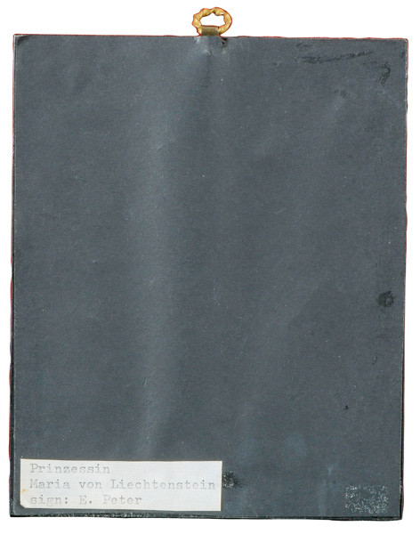 Porträt der Prinzessin Maria Franziska von Lichtenstein (1834-1909). Bunt gemalt in Puderfarben und aquarelliert auf Elfenbeinplatte, re./u./sign., hi./Gl. in ebonisiertem Holzrahmen mit Messingkranz. Provenienz: Antiquitäten Gertrud Rudigier, München 1979. Elfenbein-Gutachten und EU-Verkaufsgenehmigung liegen vor und können für EUR 150,00 erworben werden.