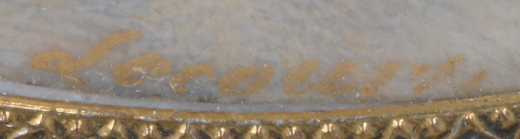 Porträt des Grafen Louis de Schonendall d'Arimont. Bunt gemalt in Puderfarben und aquarelliert auf Elfenbeinplatte, re./mittig/sign., hi./Gl. in aufwendig reliefiertem feuervergoldetem Bronzerahmen. Provenienz: Sotheby's, Genf 11. Mai 1983. Elfenbein-Gutachten und EU-Verkaufsgenehmigung liegen vor und können für EUR 150,00 erworben werden.