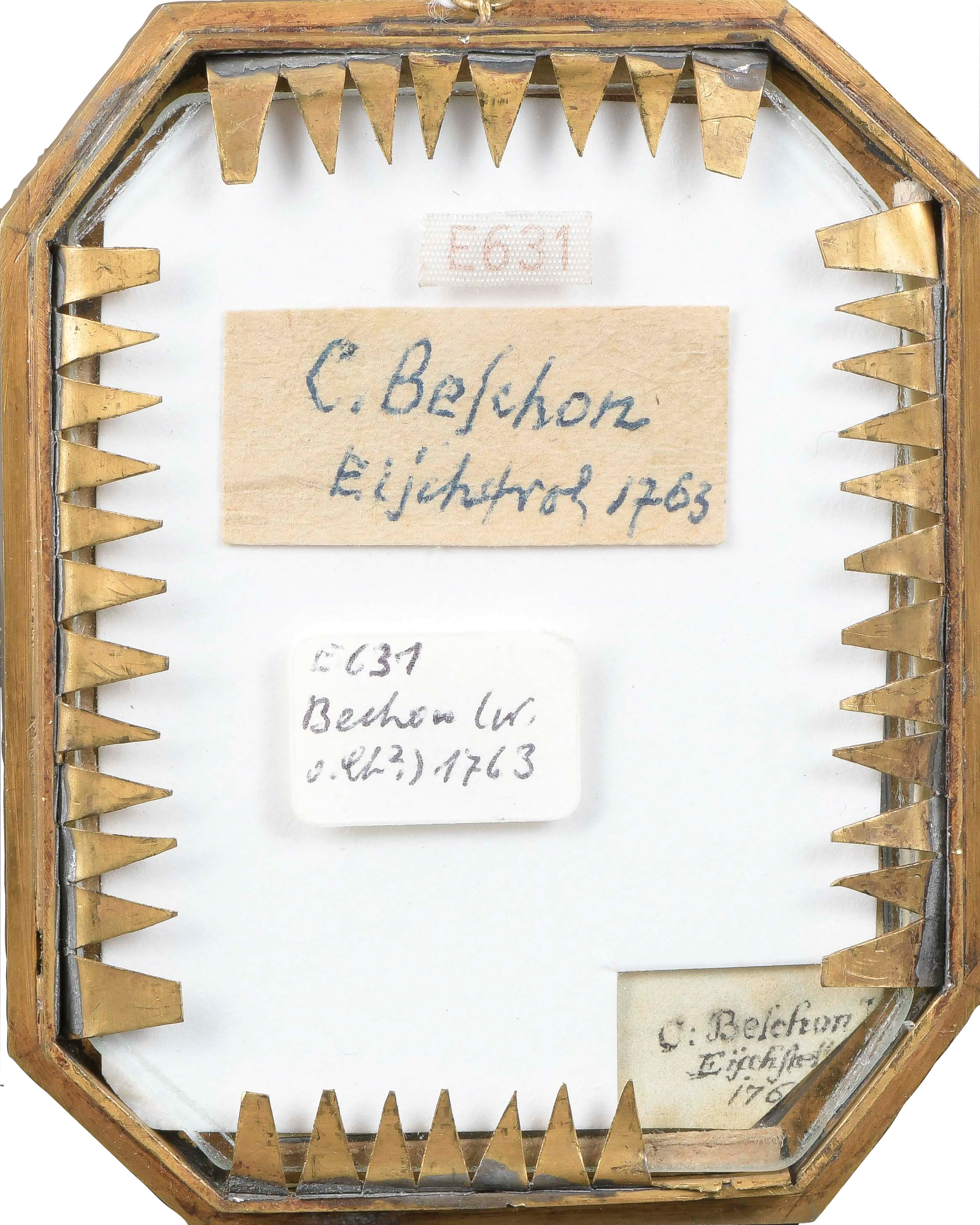 Porträt von Raimund Anton, Graf von Strasoldo-Ranziano (1718-1781), Fürstbischof von Eichstätt. Bunt gemalt in Puderfarben und aquarelliert auf Pergament, verso/re./sign./dat. 176(?), hi./Gl. in oktogonalem, profiliertem, ziseliertem, feuervergoldetem Bronzerahmen. Provenienz: Christie's, London 13. Okt. 1981.