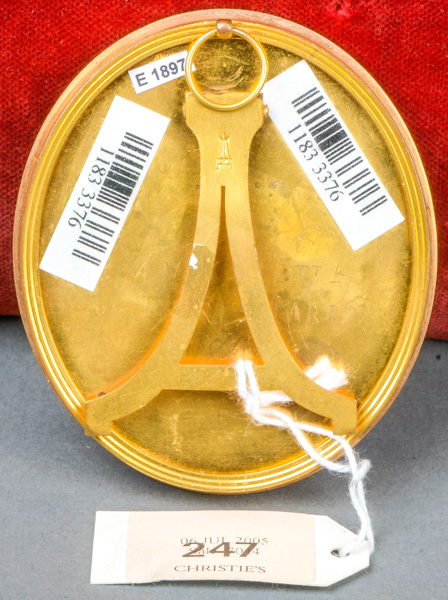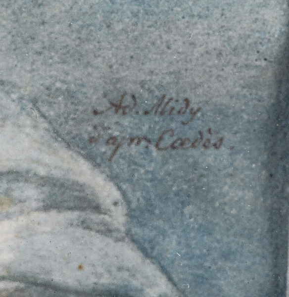 Porträt eines Knaben mit Hut. Bunt gemalt in Puderfarben und aquarelliert auf Elfenbeinplatte, re./mittig/monogr./dat. 1779, hi./Gl. in schlichtem, vergoldetem Silberrahmen, verso verglaste Rückplatte. Provenienz: Christie's, London 9. Dez. 2003 für GBP 36.000,00. Elfenbein-Gutachten und EU-Verkaufsgenehmigung liegen vor und können für EUR 150,00 erworben werden.