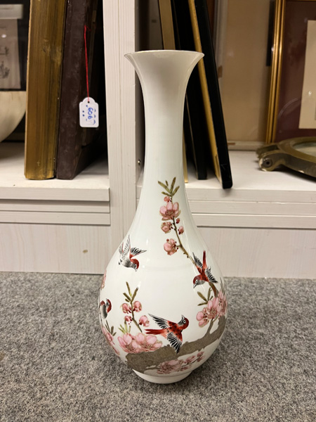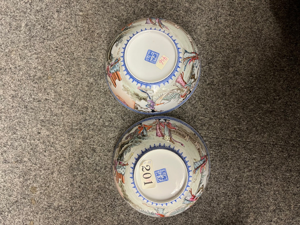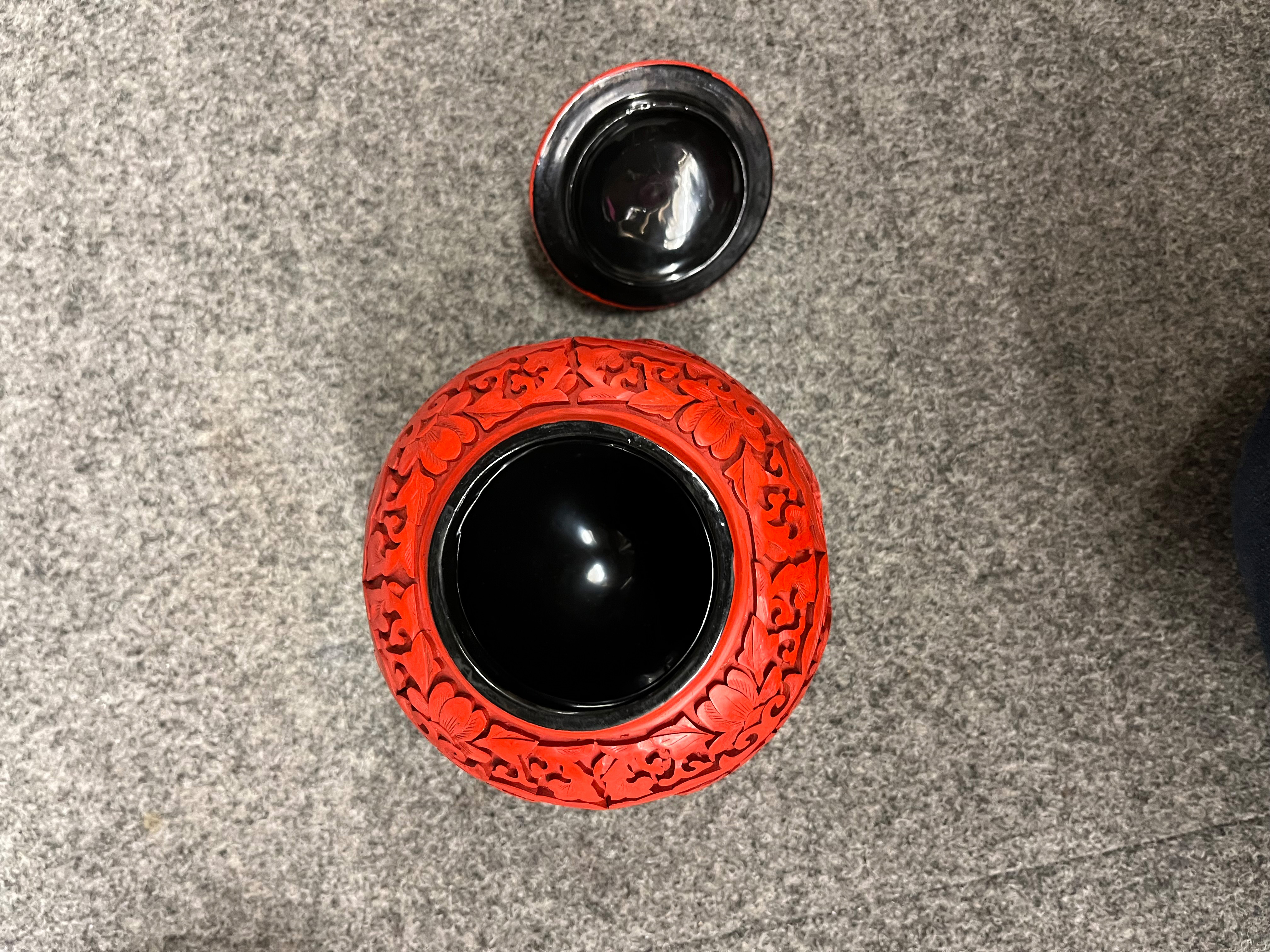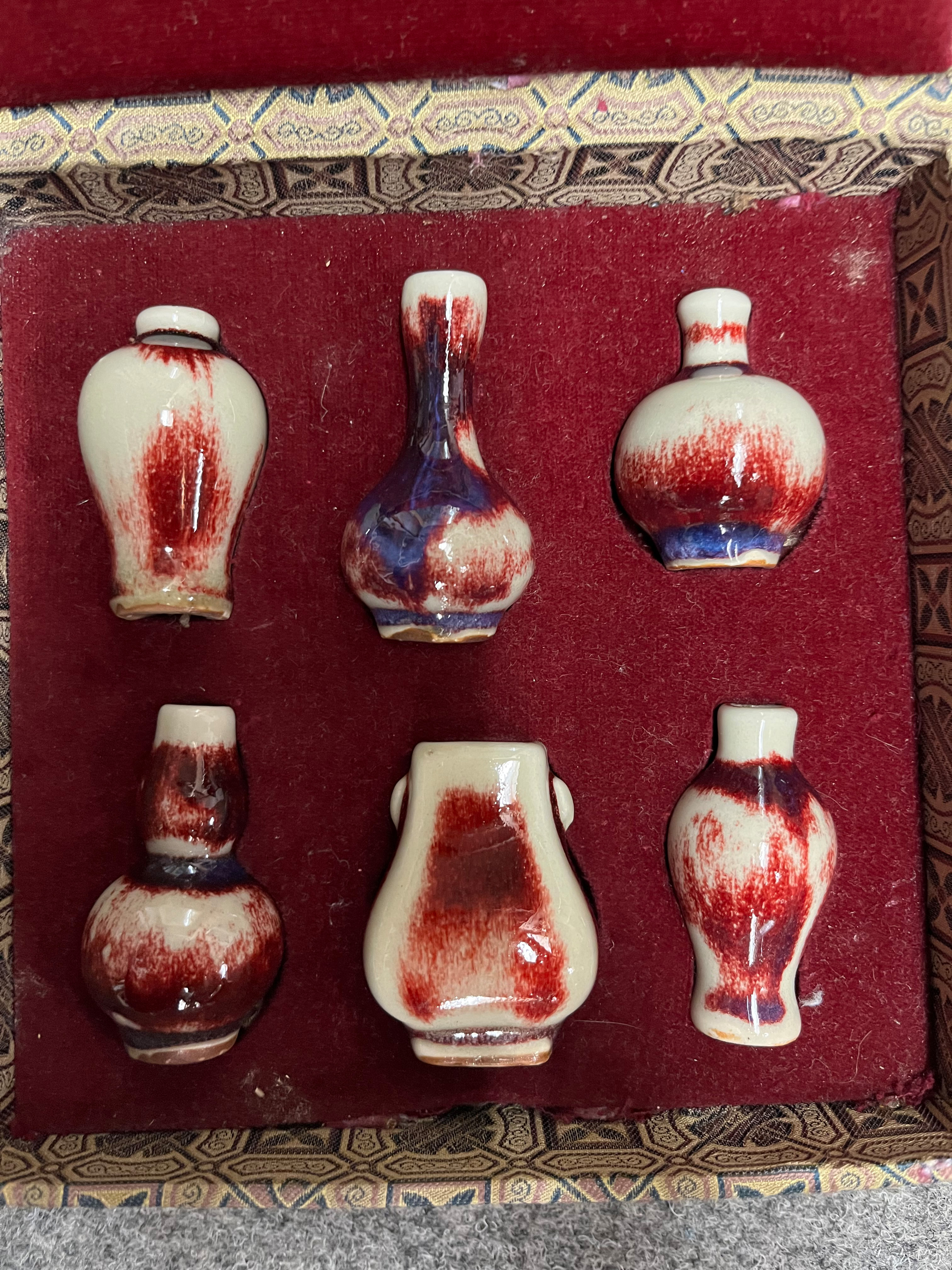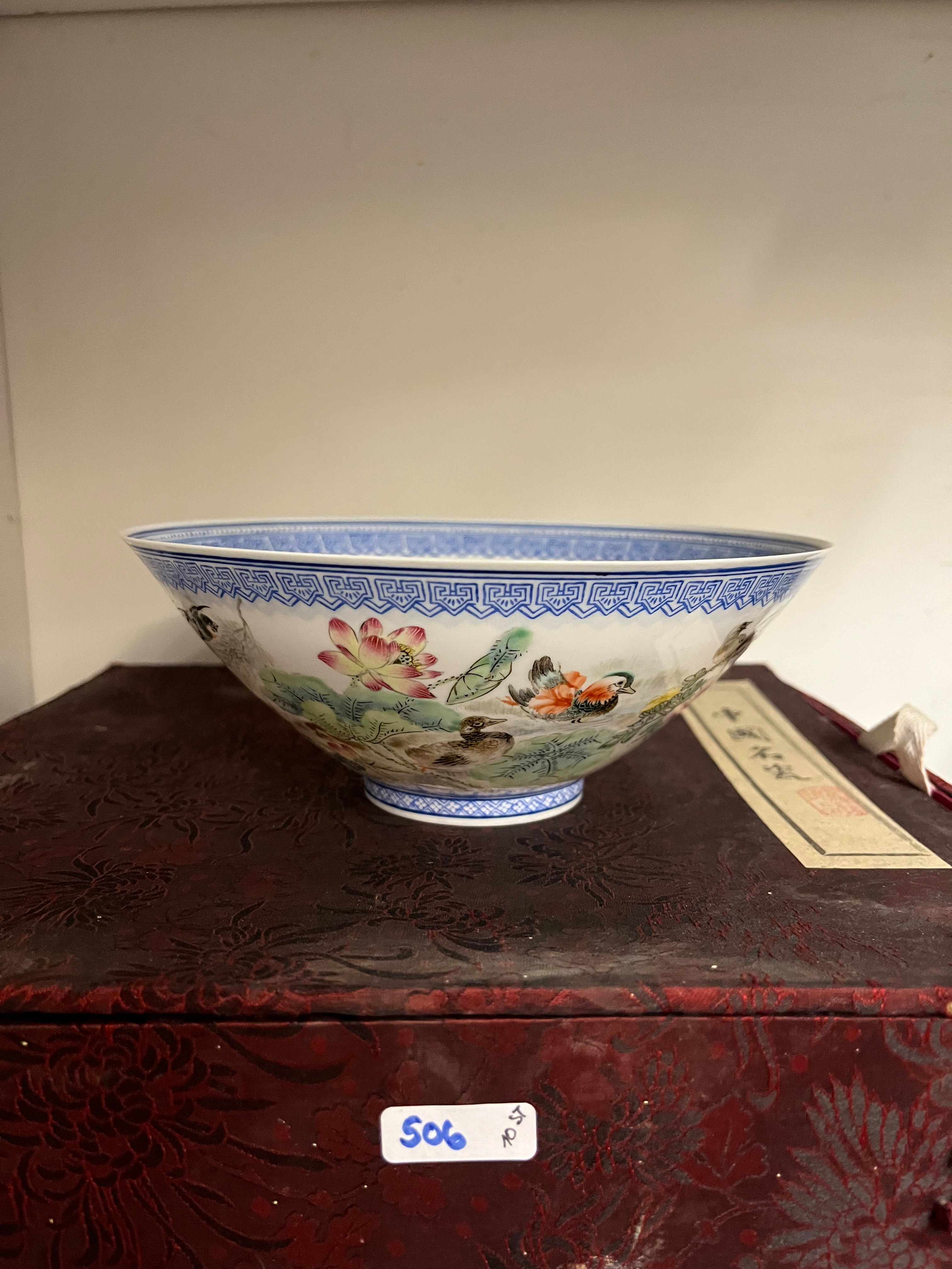 - Katalog-Nr: 506Zwölftlgs. Konvolut Asiatika: Sieben Porzellanschalen, bunt bemalt (H=4,5 bis 11 cm, D=11,5 bis 28 cm) im Etui, zwei Miniatur-Vasen (H=5 / 6 cm), eine Rotlack-Deckeldose (H=13 cm, D=11 cm), ein Teller (D=30 cm) und eine Vase (H=28 cm). (besch.)o.L.