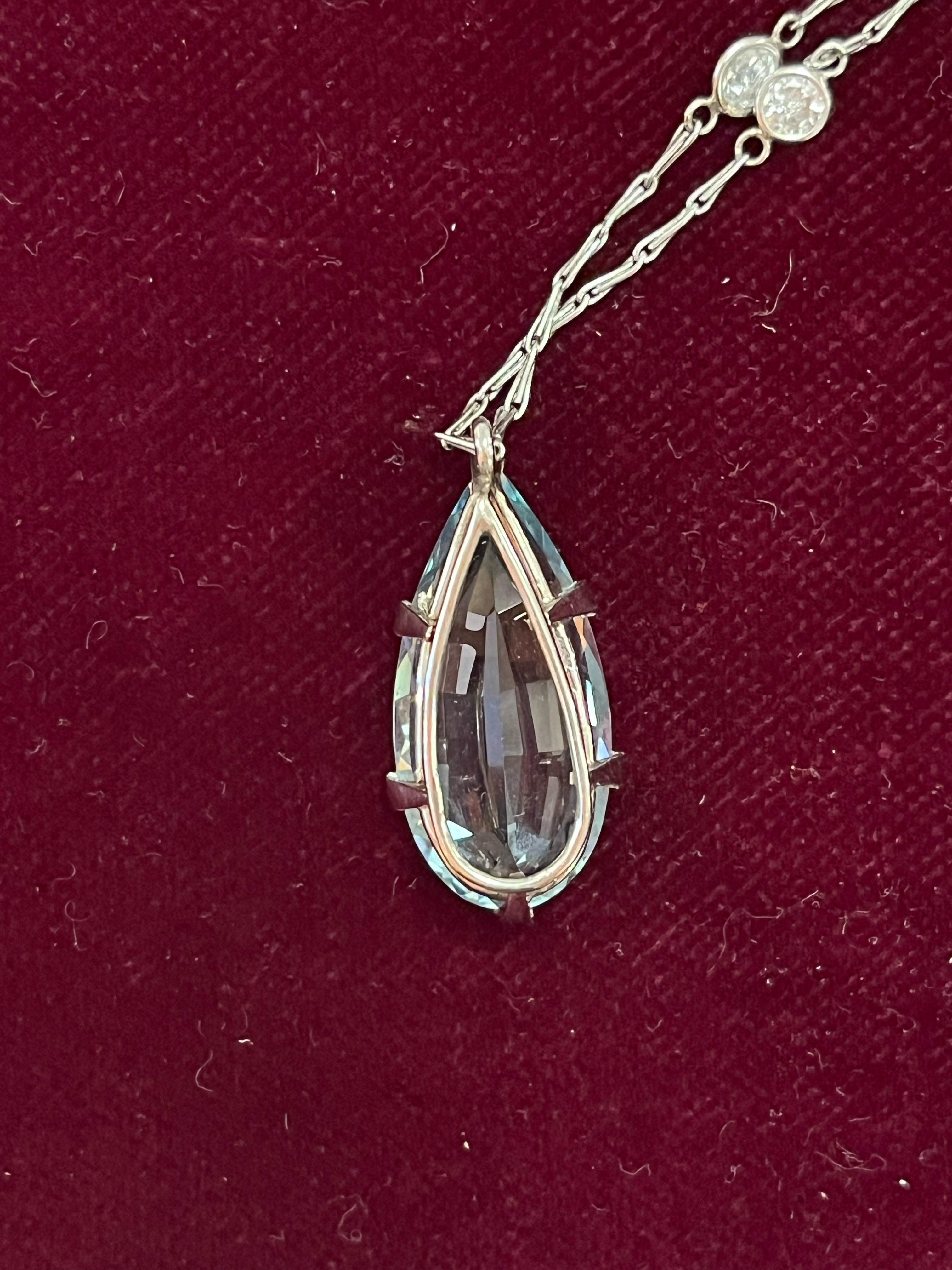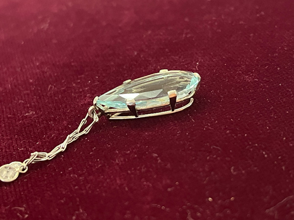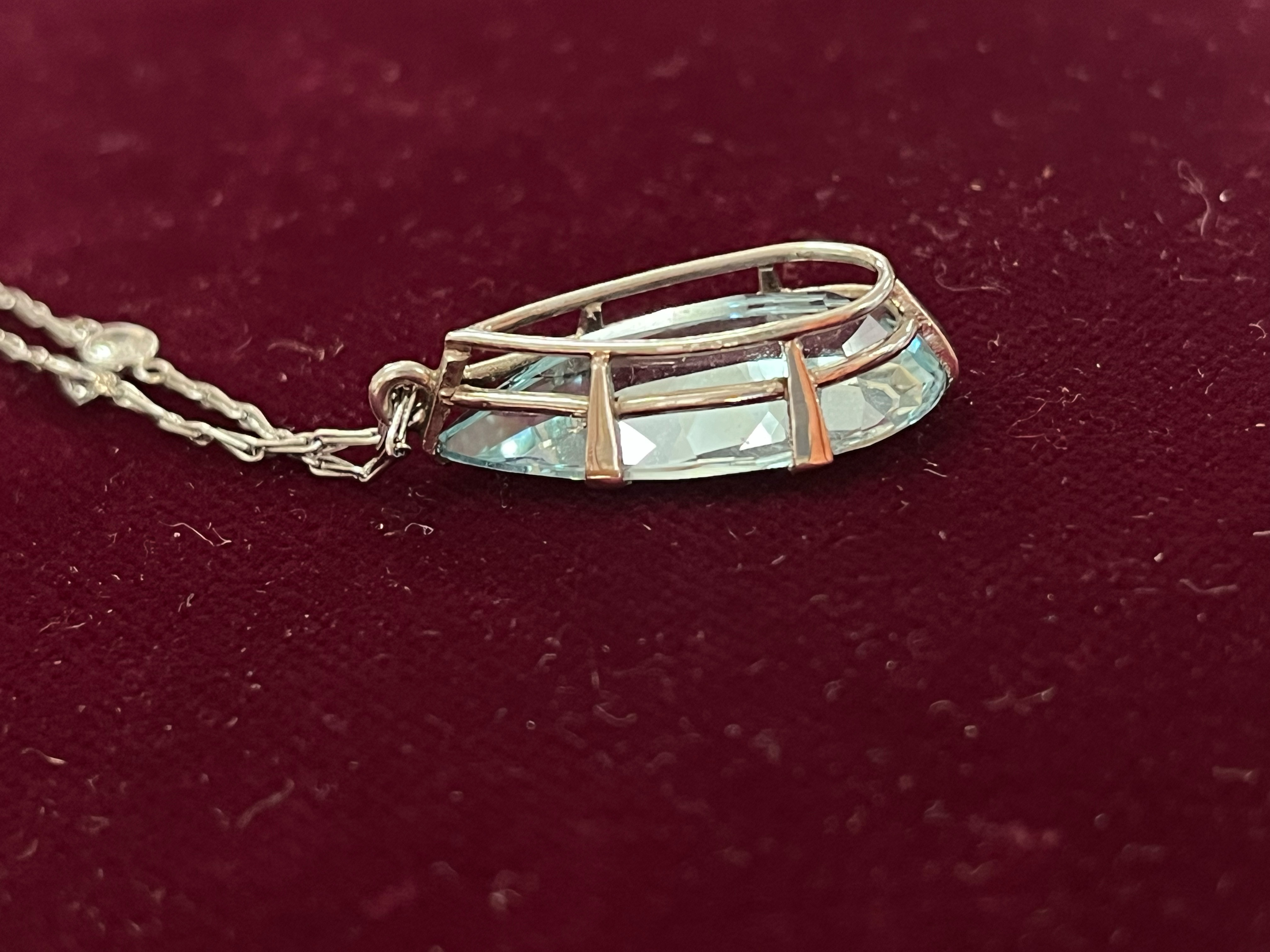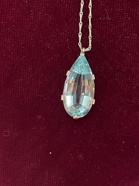 - Katalog-Nr: 1494Halskette mit Anhänger. 18 kt Gold, besetzt mit Aquamarin und Altschliff-Brillanten, ca. 0,40 ct, Gesamtgewicht ca. 9,5 g, L=47 cm. Die Begutachtungen der verarbeiteten Edelsteine und Diamanten wurden im gefassten Zustand vorgenommen, d.h. unter Vorbehalt einer sachgerechten Graduierung, die nur an ungefassten Steinen erfolgen kann. Dies hat zur Folge, dass die Gewichte (sog. "berechnete Gewichte", d.h. ca.+/- 10 % Abweichung) und Qualitäten (Farbe, Reinheit und Schliff) der Steine nur annähernd angegeben werden können.o.L.