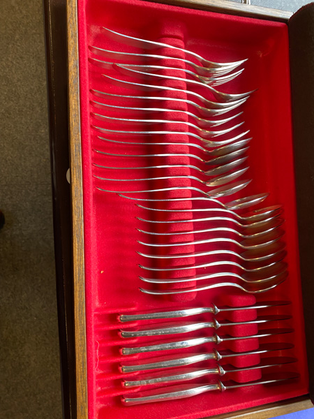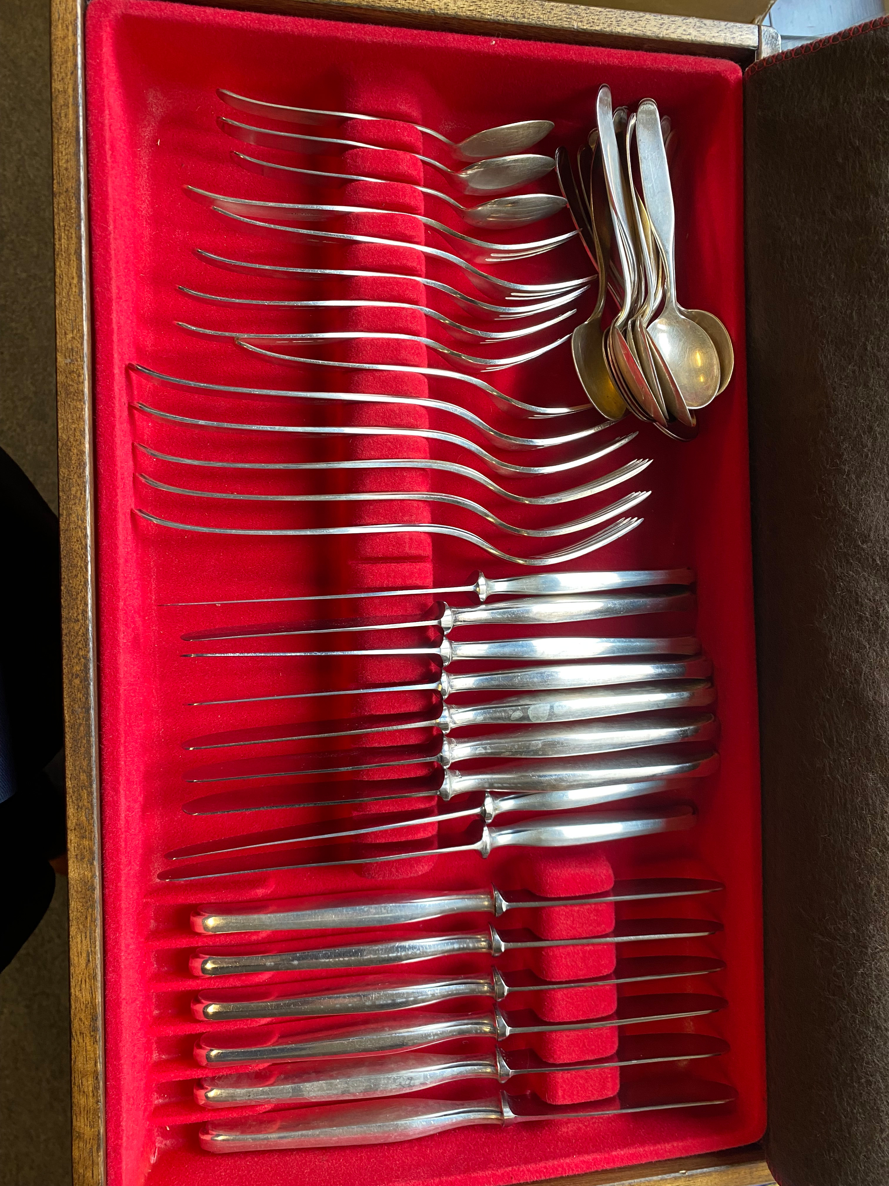 - Katalog-Nr: 1633Konvolut Besteckteile. Wilkens & Söhne 20. Jh. 800er Silber, ca. 3.690 g, im Kasten.o.L.