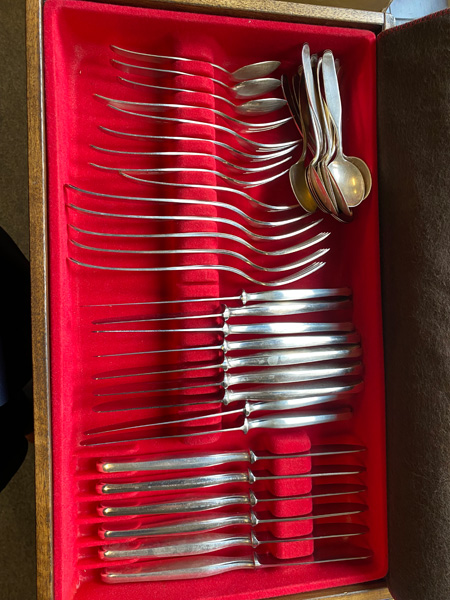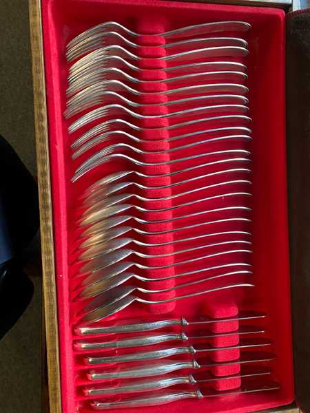 - Katalog-Nr: 1649Konvolut div. Speisebesteckteile im Kasten. 800er Silber, ca. 2.650 g.o.L.