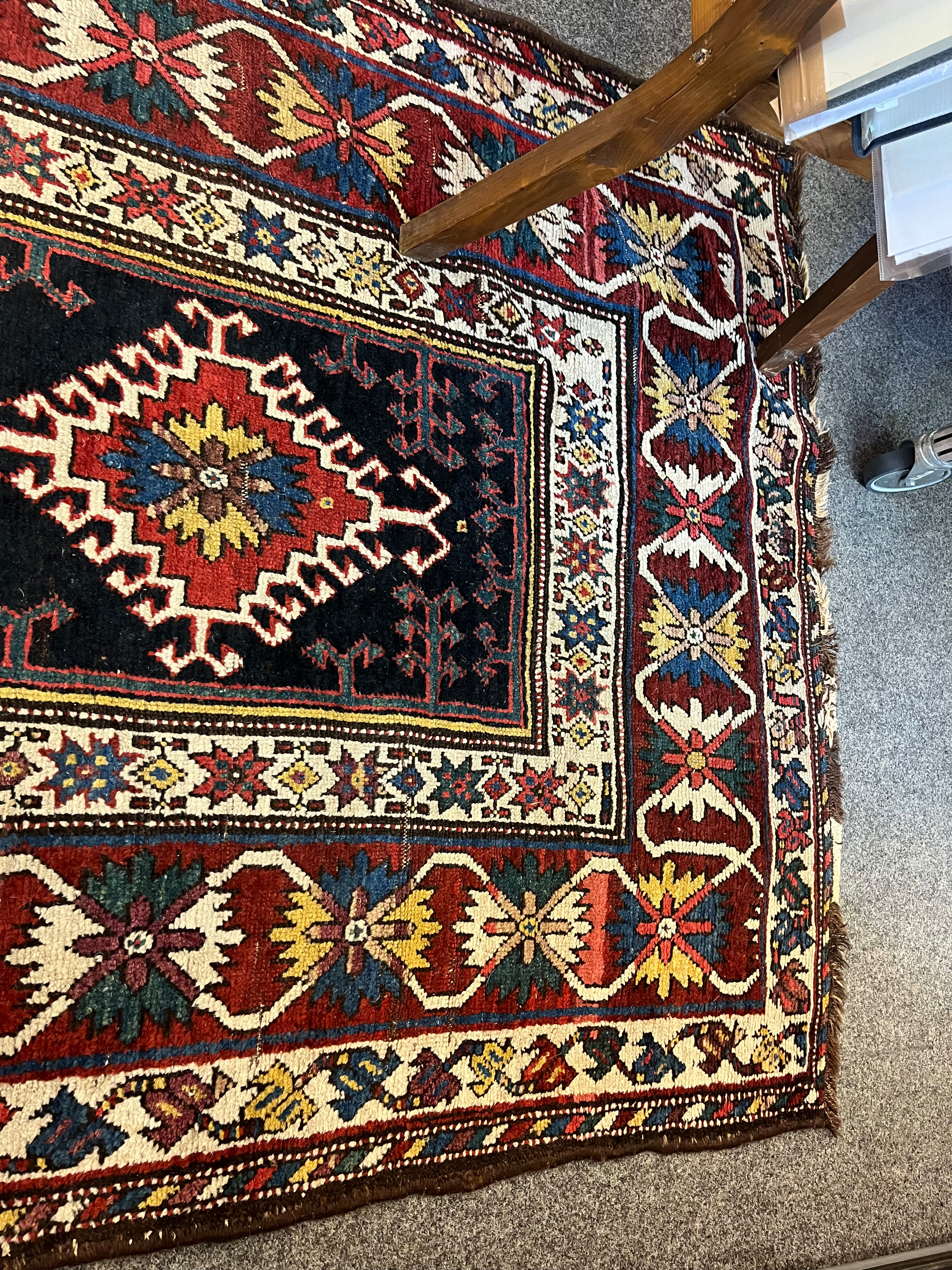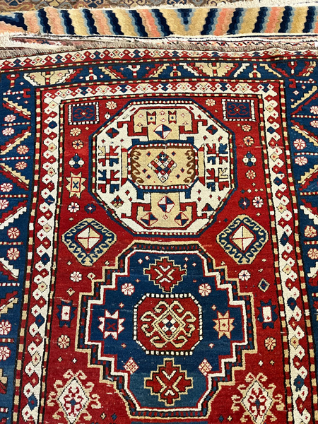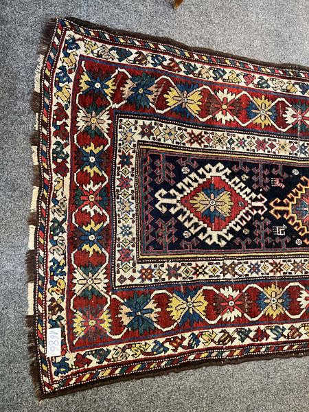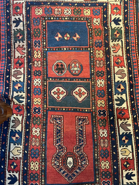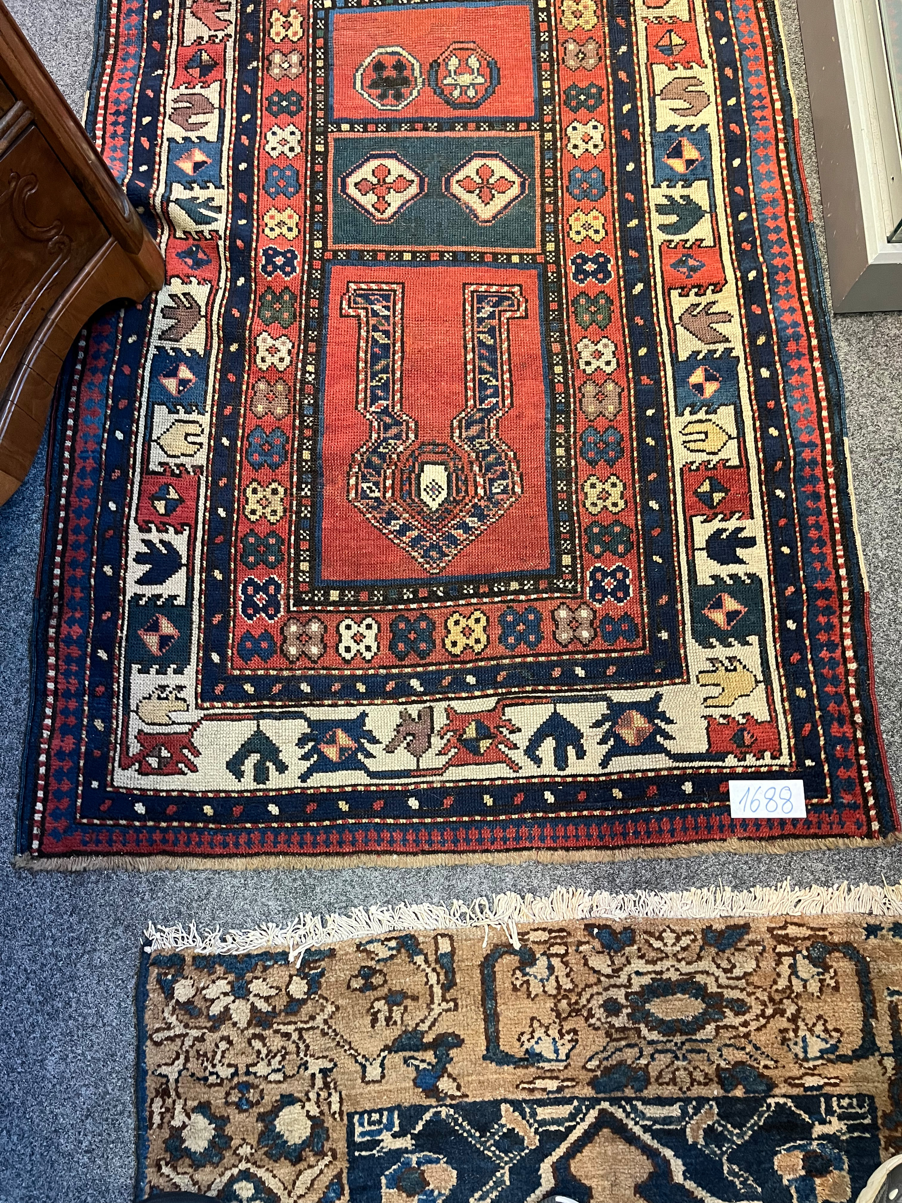 - Katalog-Nr: 1688Kaukasischer Gebetsteppich, 160 x 96 cm. Zertifikat der GALERIE OSTLER, München, liegt vor.o.L.