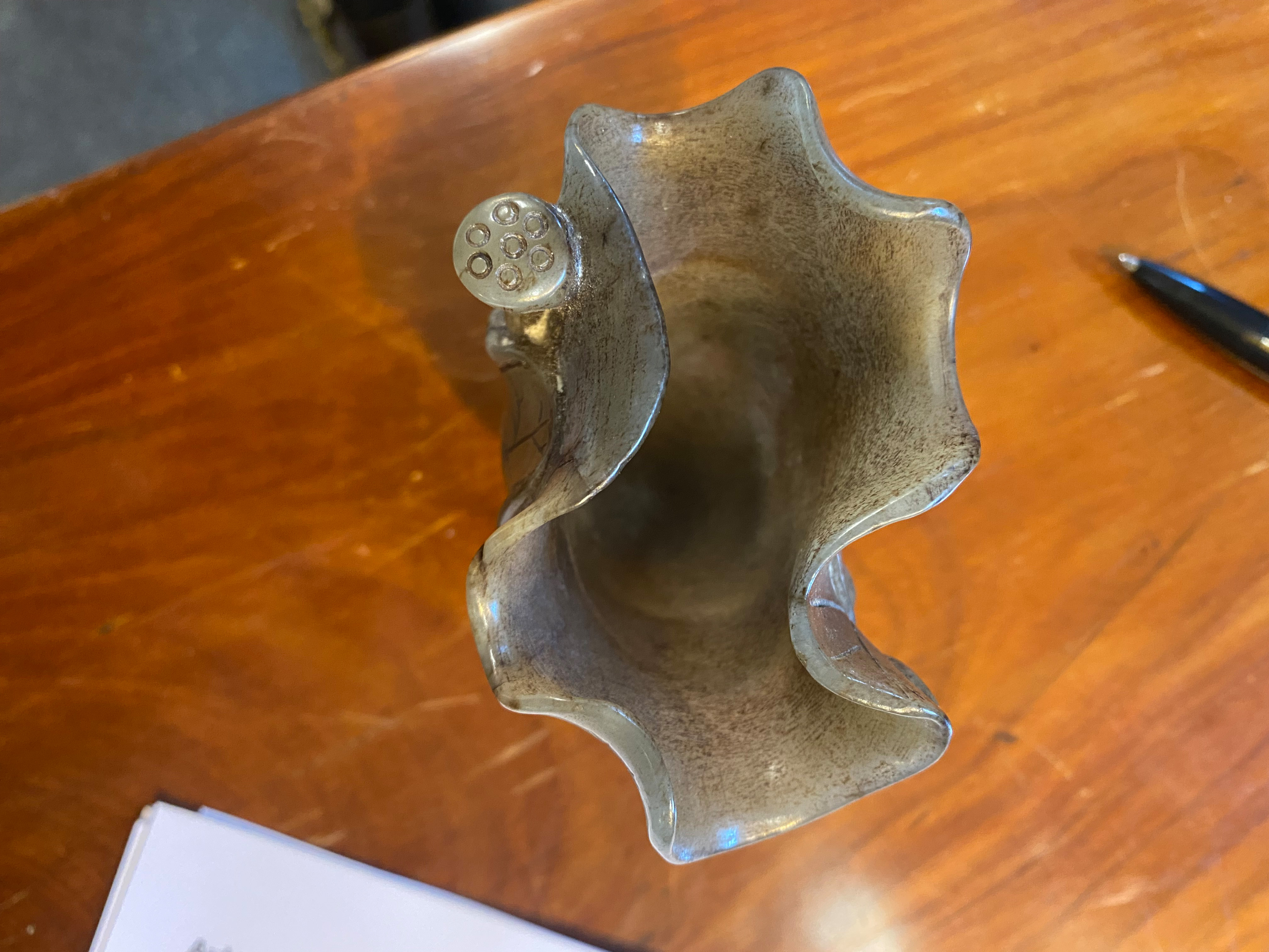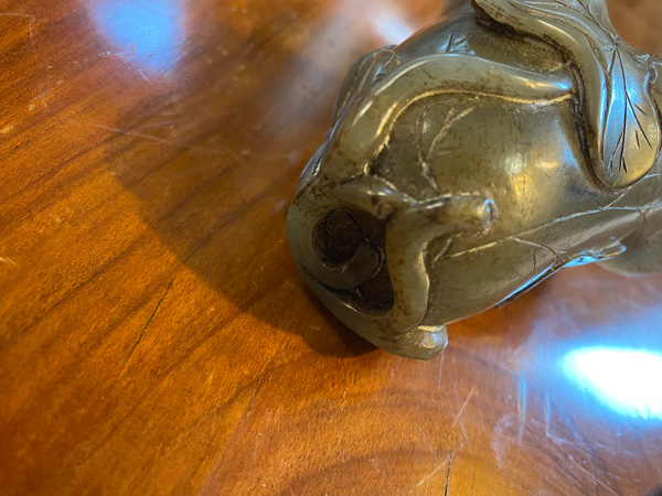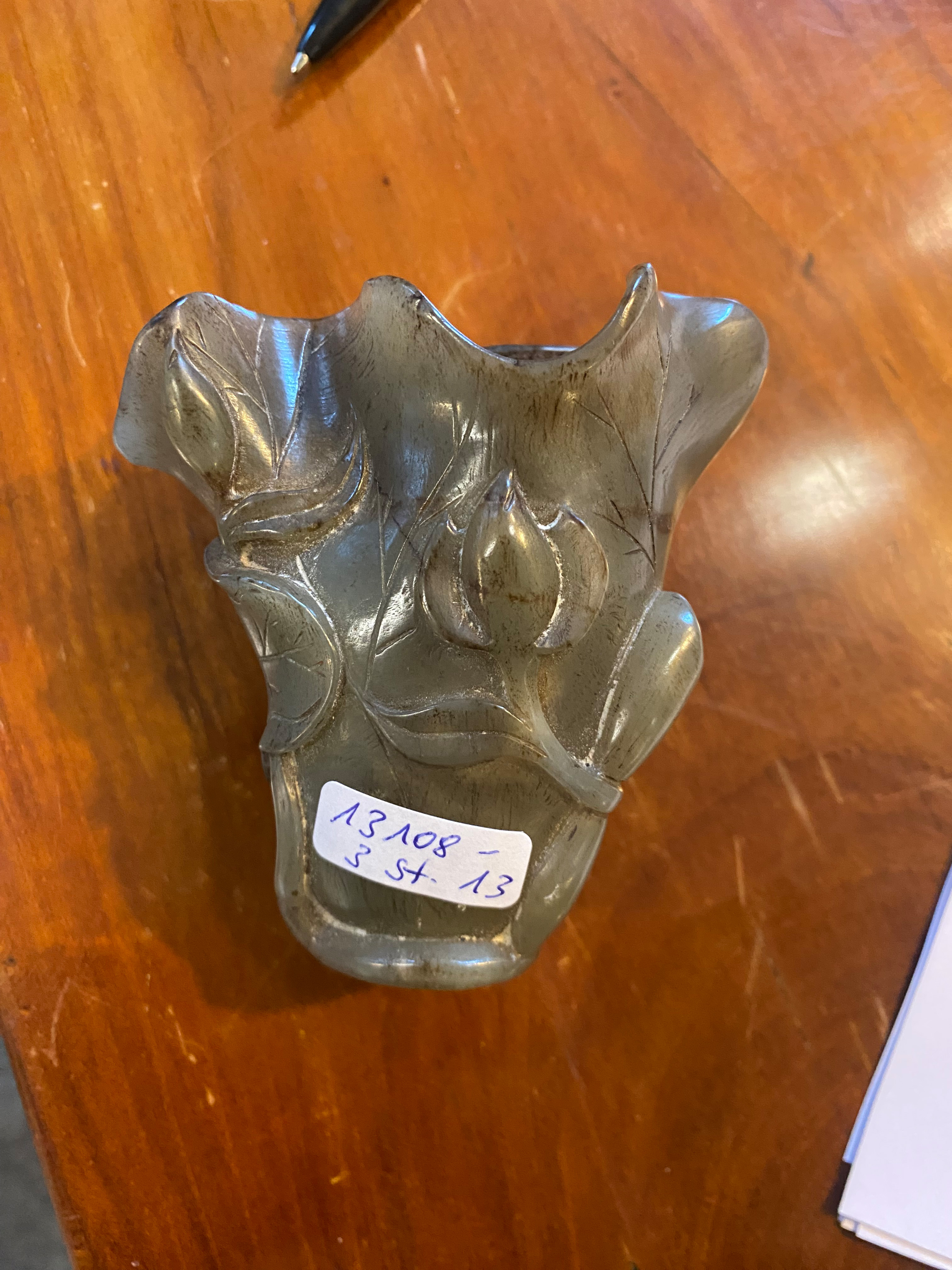 - Katalog-Nr: 1247Dreitlgs. Konvolut Jade. Asien. Bestehend aus: Zwei Vasen (H=4,1 / 8,1 cm) und ein Affenpaar (H=6 cm).o.L.