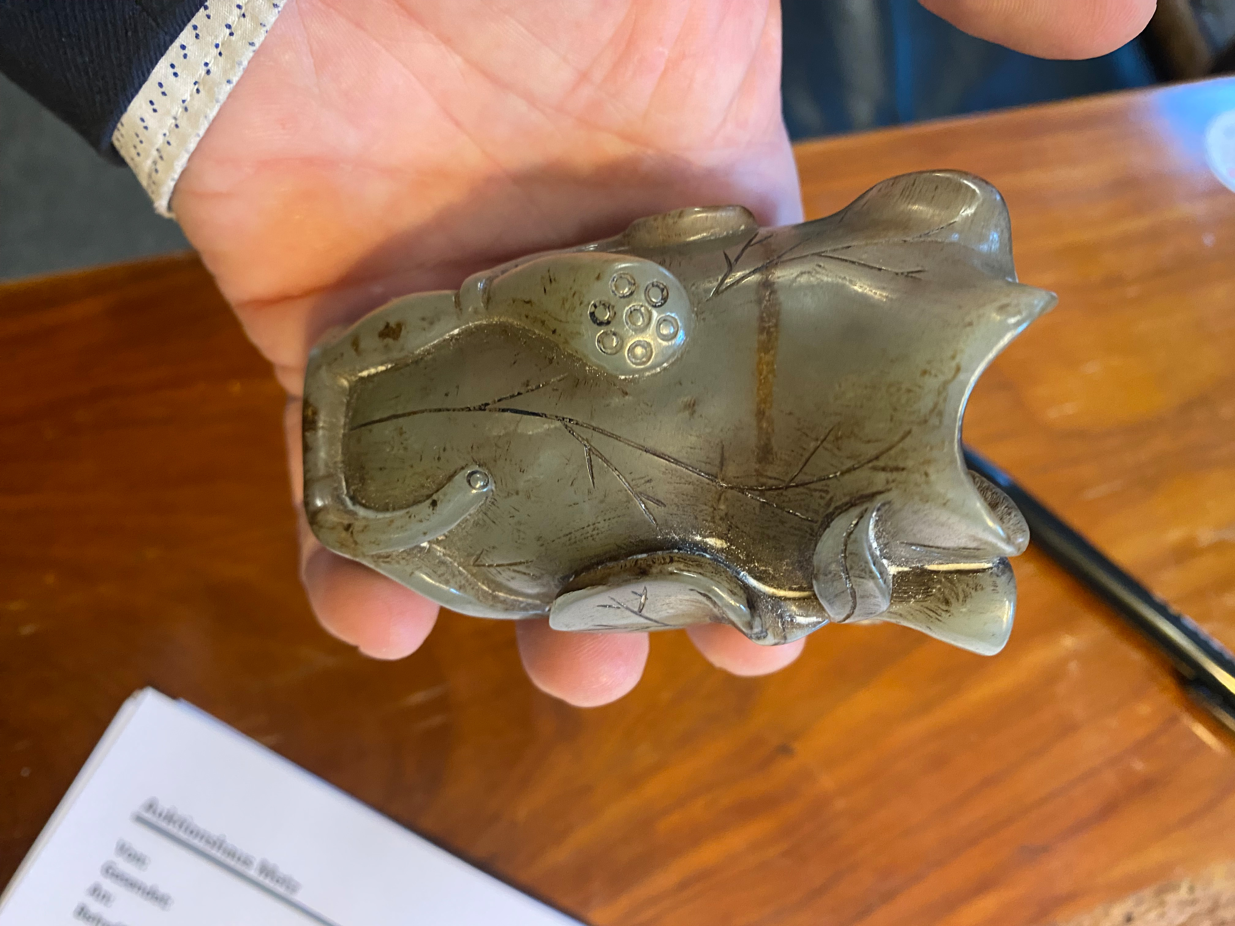 - Katalog-Nr: 1242Sechstlgs. Konvolut Jade. Asien. Darunter ein Anhänger (D=5,1 cm) und kleine Tafeln (6,1 x 4,8 / 6,4 x 4,5 cm).o.L.