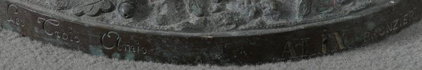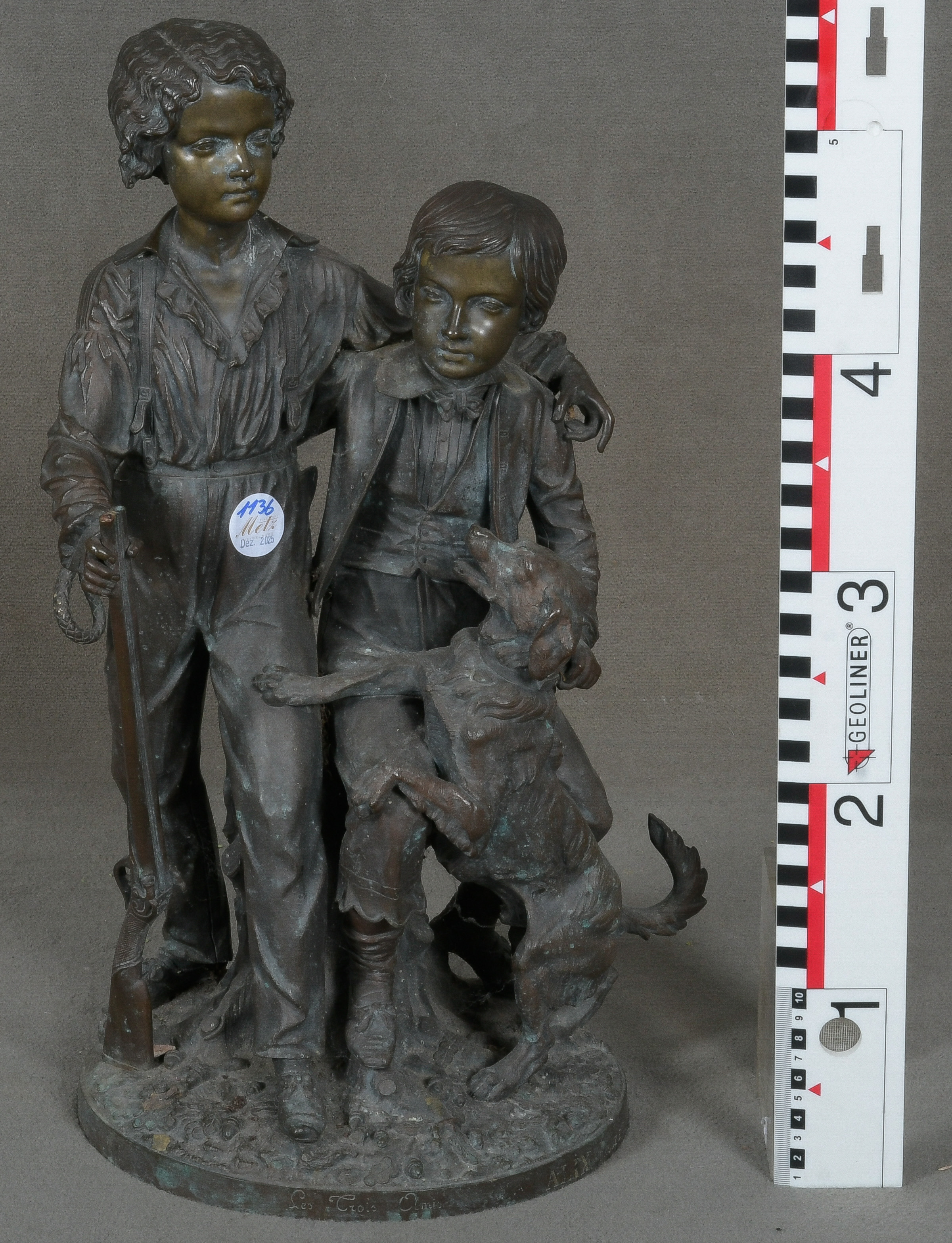 - Katalog-Nr: 1136Jean-Baptiste Alix (1801-1863). „Les trois amis“. Bronze, vorne an der Plinthe sign./dat. 1855, H=53 cm.o.L.