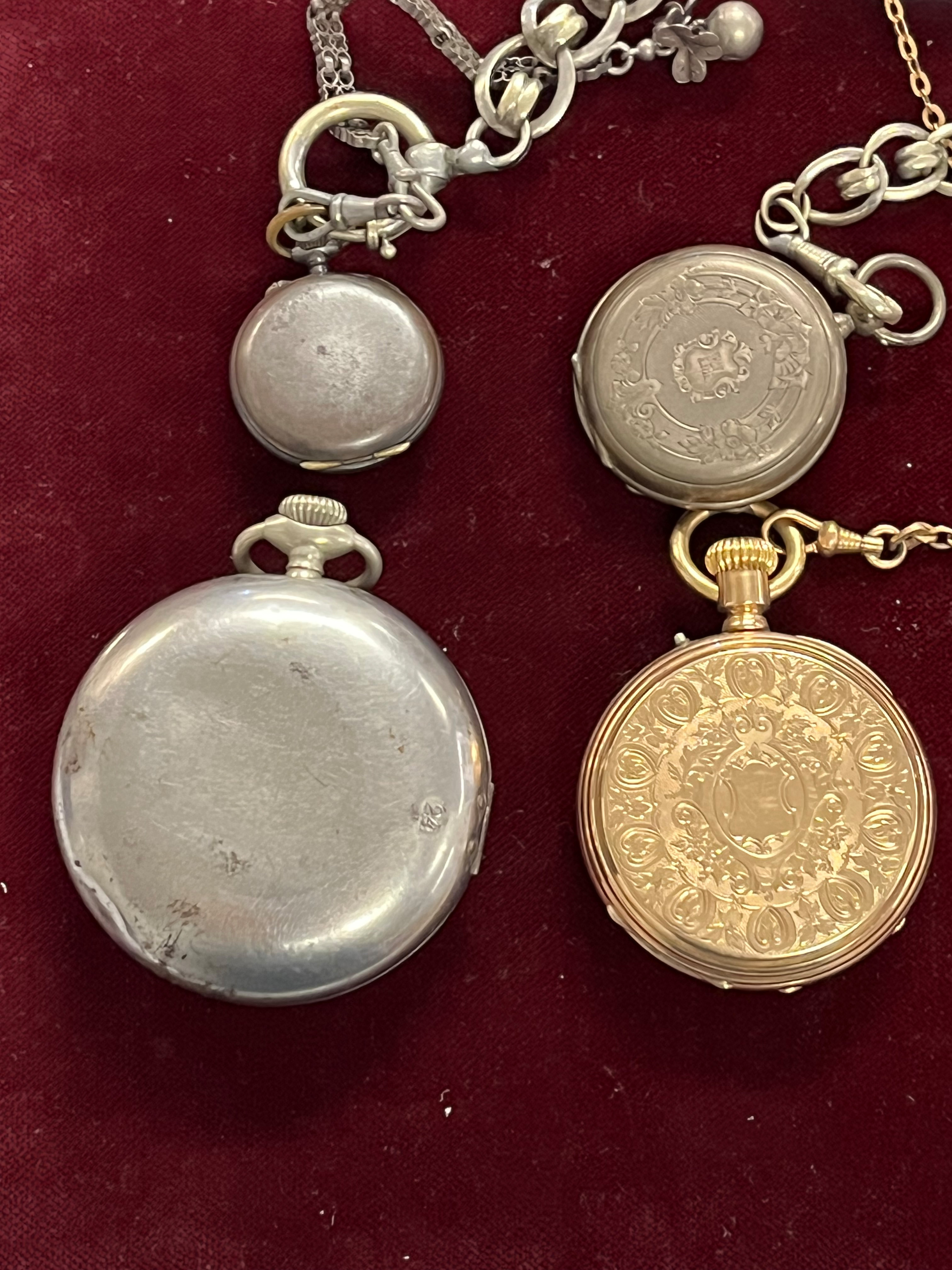 - Katalog-Nr: 1150Vier Taschenuhren. Vergoldet, teilw. mit Kette. (Funktion ungeprüft)o.L.