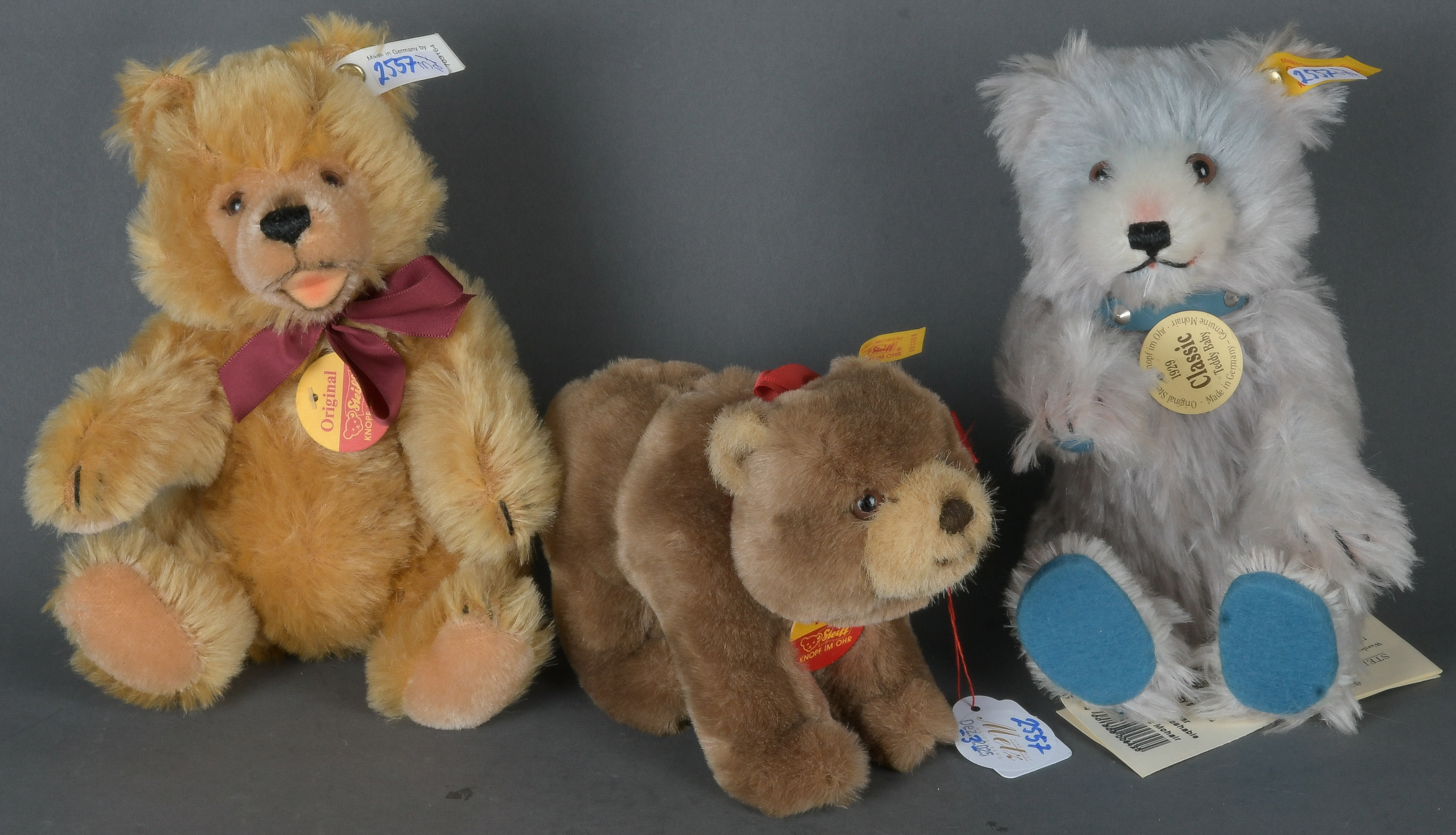 - Katalog-Nr: 2557Drei Steiff-Bären mit Knopf im Ohr, H=13 bis 19 cm.o.L.