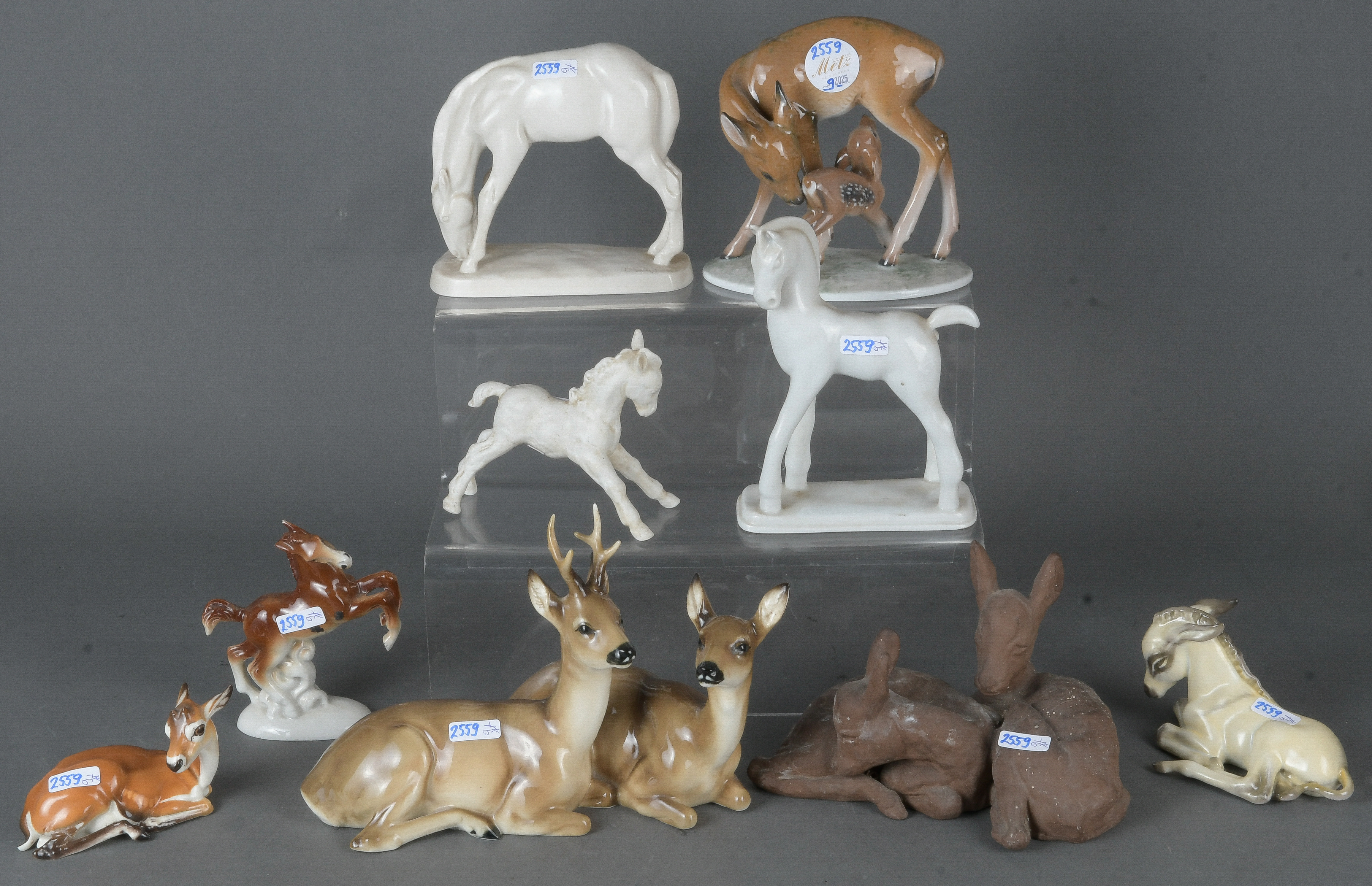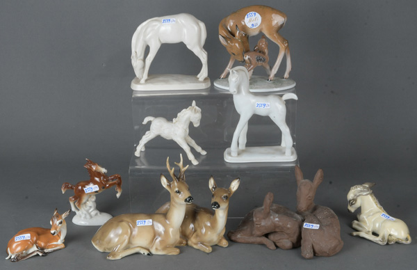- Katalog-Nr: 2559Fünf Pferde und vier Rehe, u.a. Heubach / Hutschenreuther / Karlsruhe / Rosentahl / Schaubach / Schwarzburger Werkstätten 20. Jh. Irdengut / Porzellan, bunt bemalt; am Boden gemarkt, u.a. Entwurf und sign. C. Metzger, E. Richter, R. Rempel, H=6 bis 17,5 cm.o.L.