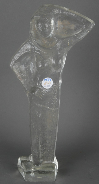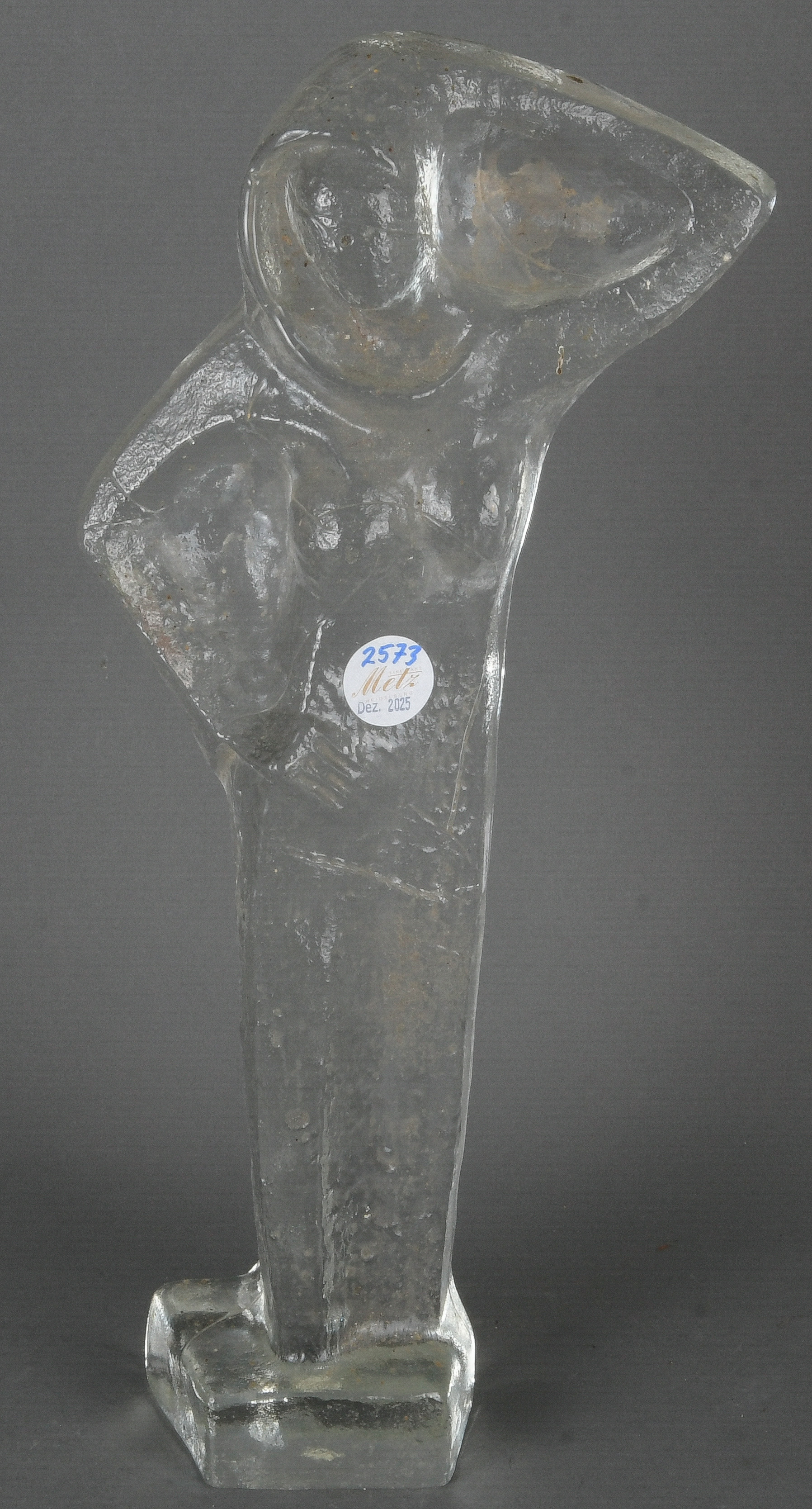 - Katalog-Nr: 2573Glaskünstler. Wohl Skandinavien 20. Jh. Stehende Frau. Eisglas, H=48 cm.o.L.