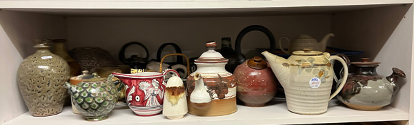 - Katalog-Nr: 2556Großes Konvolut Keramik / Feinsteinzeug, u.a. Kannen, Schalen und Vasen, teilw. glasiert, H=10 bis 25 cm.o.L.