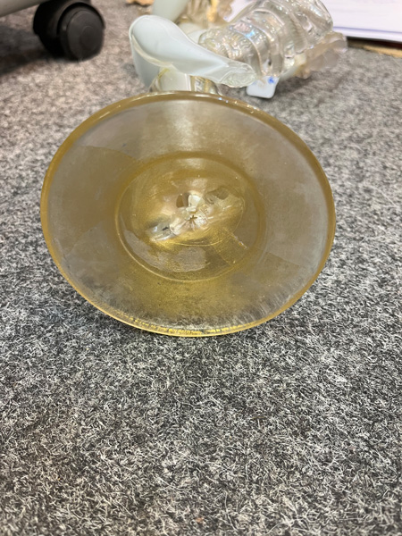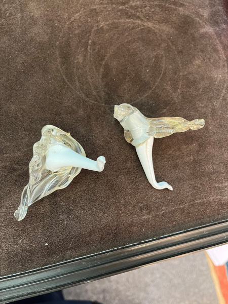 - Katalog-Nr: 2569Zwei Aschenbecher. Murano / Theresienthal 20. Jh. Buntes Glas, mit Einschmelzungen, H=10 / 22,5 cm.o.L.