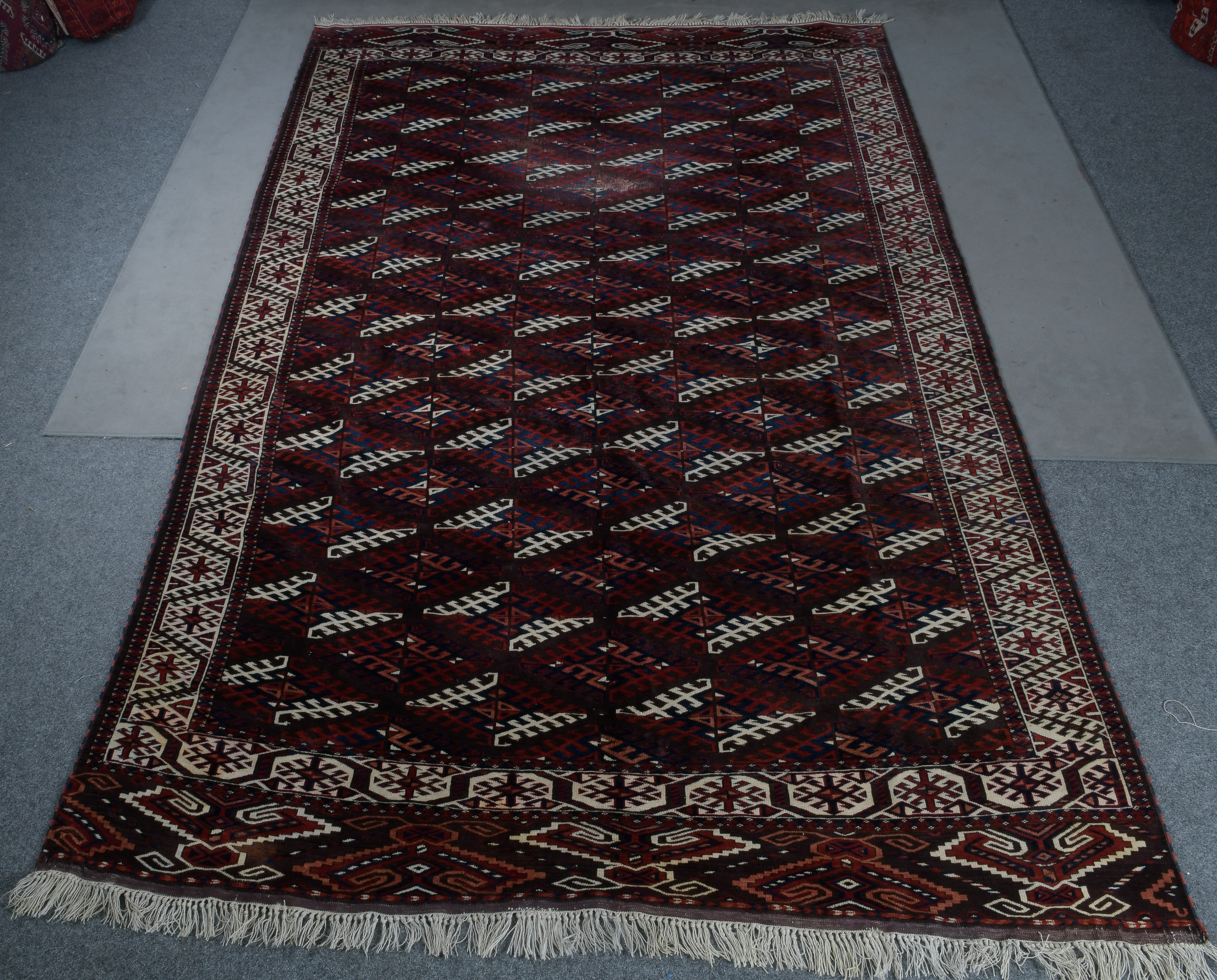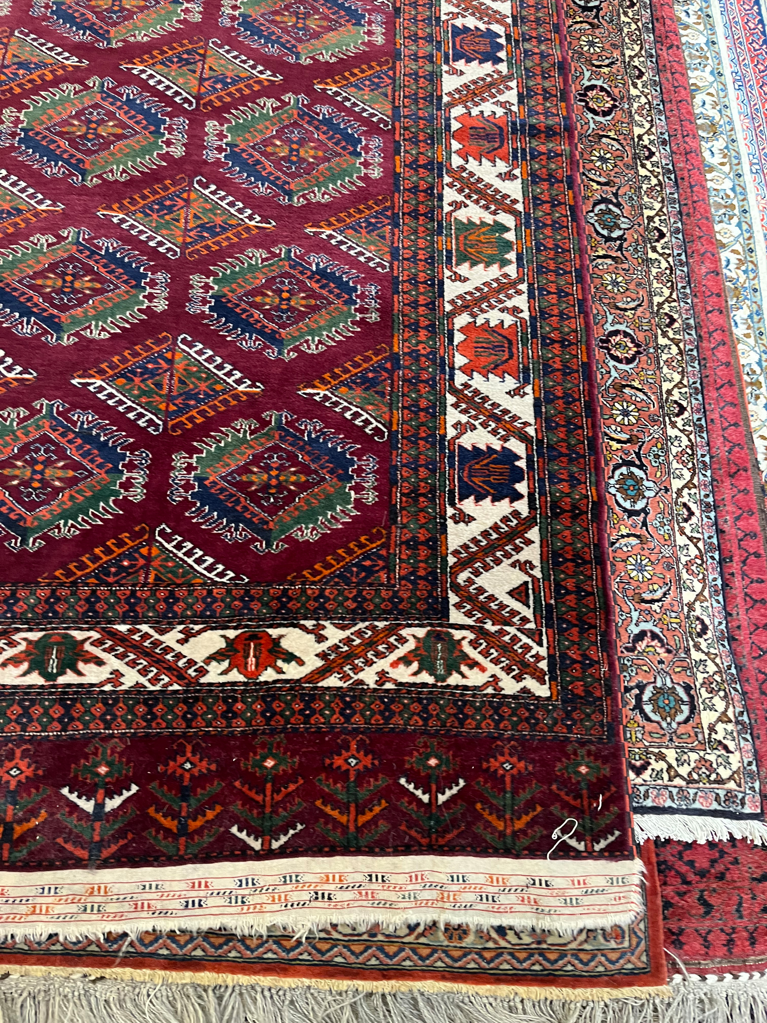 - Katalog-Nr: 2633Jomud-Teppich, 340 x 224 cm. (besch.)o.L.