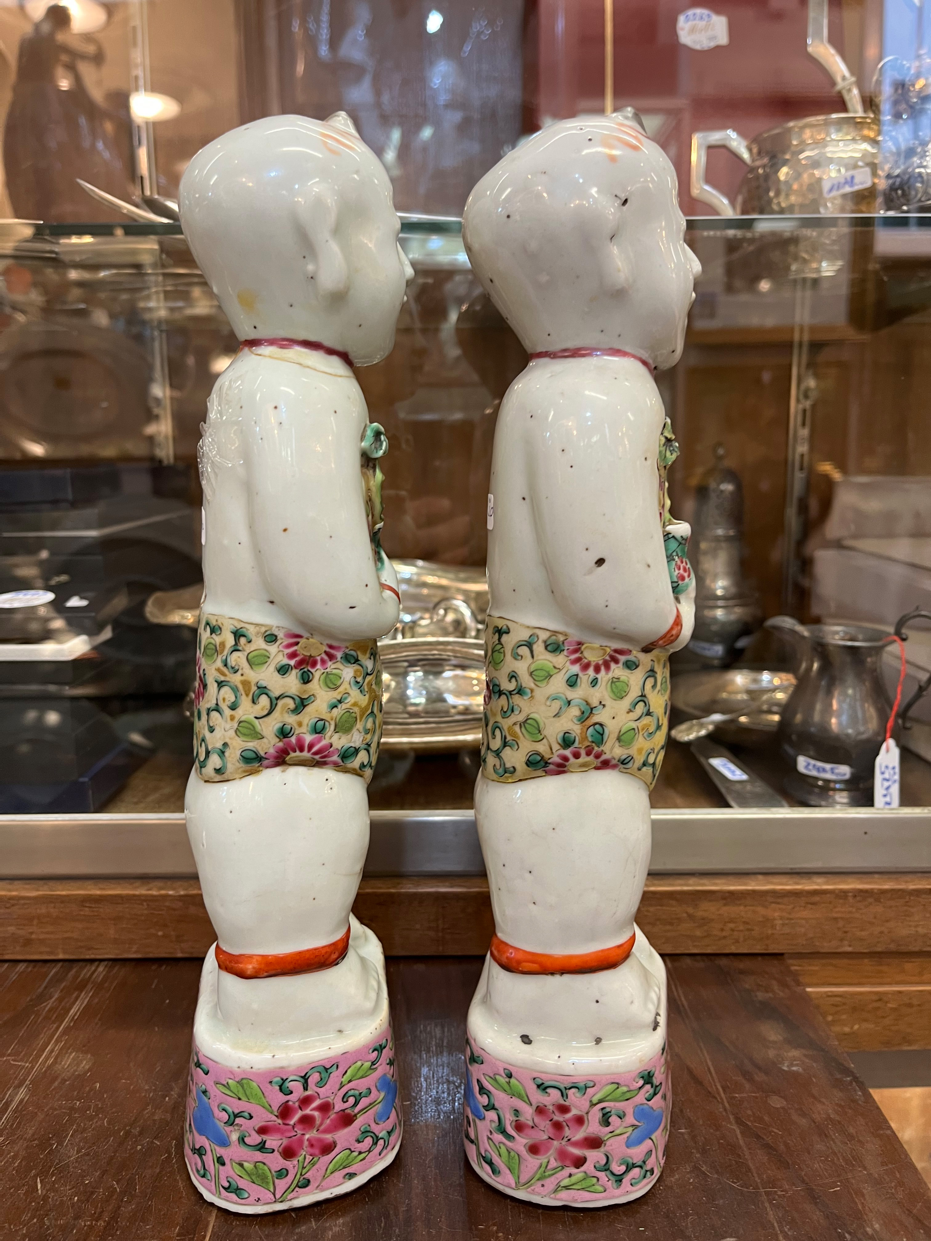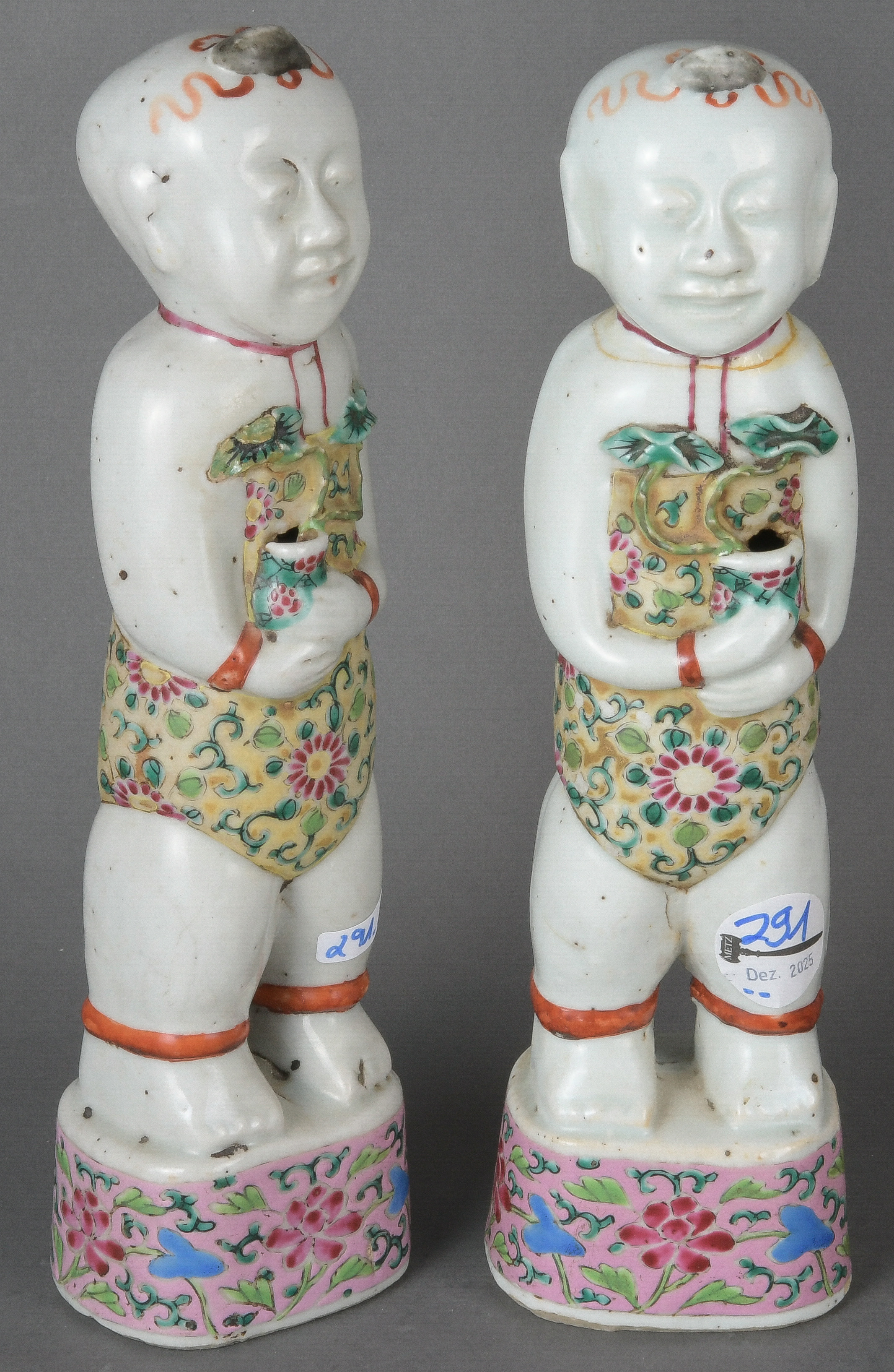 - Katalog-Nr: 291Paar Knabenfiguren. Asien. Porzellan, bunt bemalt; ohne Marke, je H=31 cm.o.L.