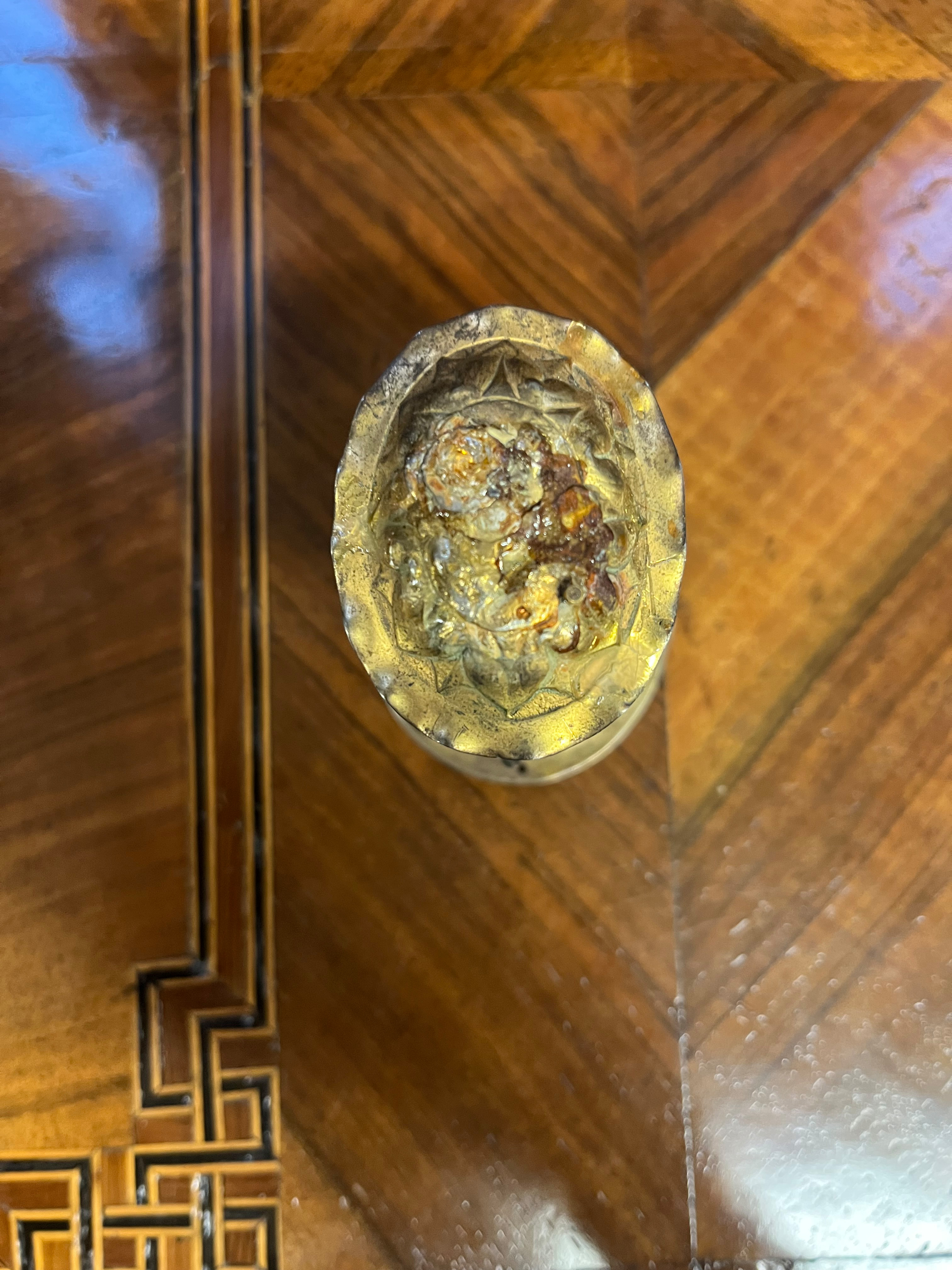 - Katalog-Nr: 459Samovar. Wien 1840. Walzenförmig, auf geschweiften Beinen. Silber, ca. 1.000 g, am Boden Stadtpunze mit Jahreszeichen und Meistermonogramm „C.S.“, H=31 cm. (Brenner fehlt)o.L.
