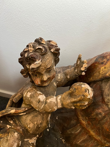 - Katalog-Nr: 537Dreirad-Pferd. Wohl deutsch 20. Jh. Schmiedeeisernes Gestell / Massivholz, geschnitzt, auf Kreidegrund gefasst, H=84 cm, B=85 cm, T=63 cm. (rest.)o.L.