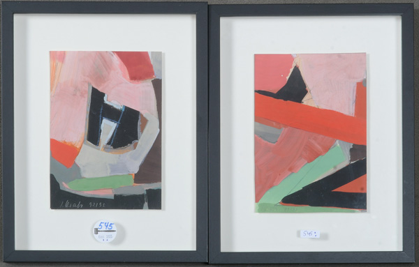 - Katalog-Nr: 545Ingo Kraft (*1949). Paar abstrakte Kompositionen. Mischtechnik, li./u./sign./dat. (19)93, hi./Gl. gerahmt, je 21 x 14,5 cm.o.L.
