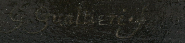 - Katalog-Nr: 550Luigi Serena (1855-1911). Drei tuschelnde Mädchen mit schäkerndem Mann. Öl/Lw., re./u./sign., gerahmt, 47 x 69 cm.o.L.